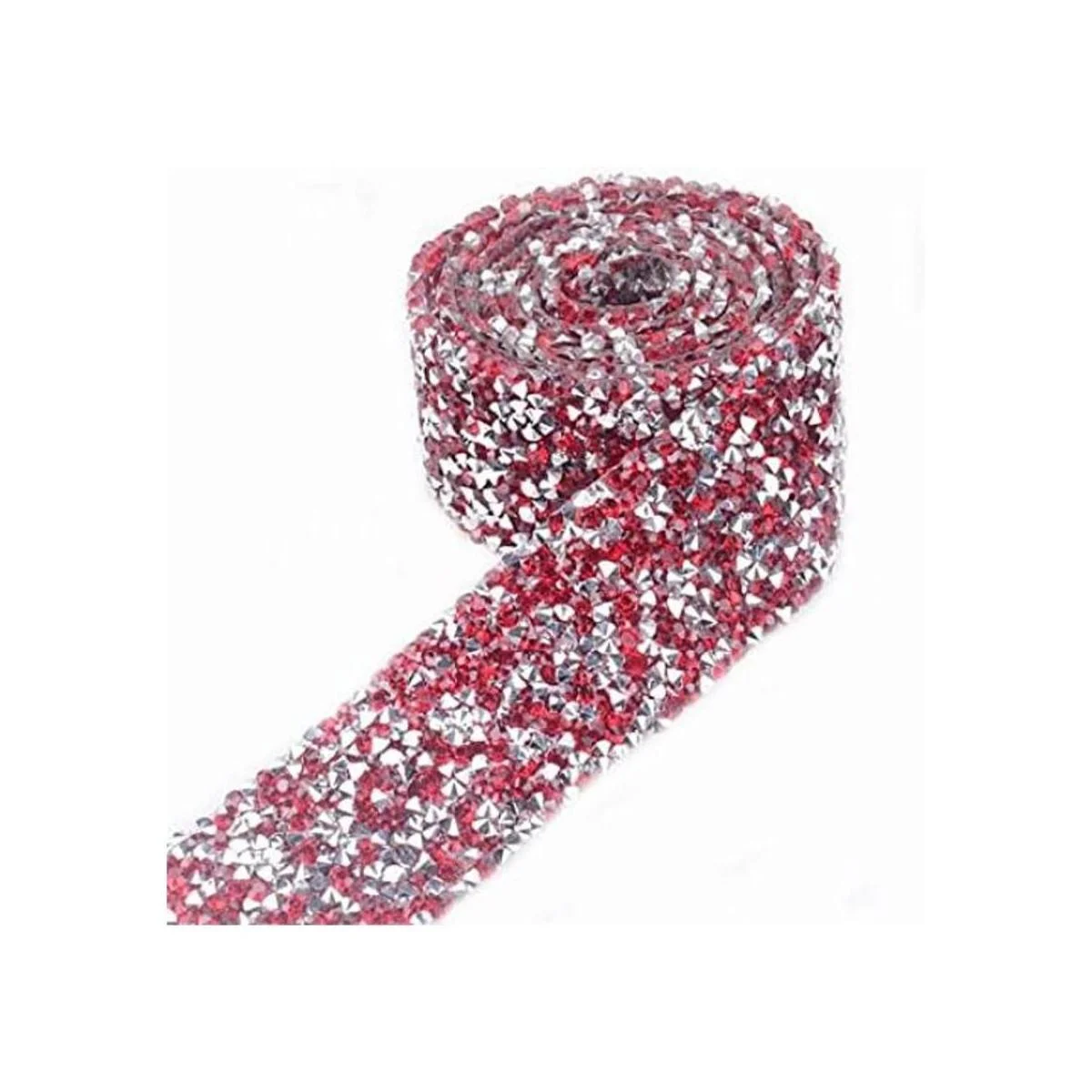 EORTA 1 yarda x 1.2 in, borde de cuentas de diamantes de imitación de cristal brillante, cinta termoadhesiva para planchar, cinturón de banda de cadena brillante para bricolaje, vestido de novia, adorno de teléfono, decoración de pared, color rojo