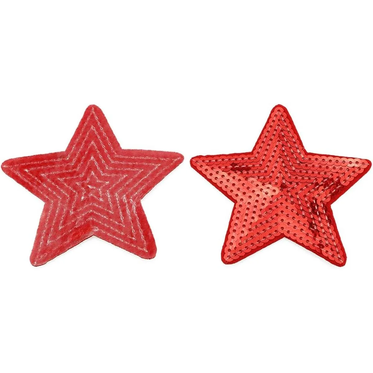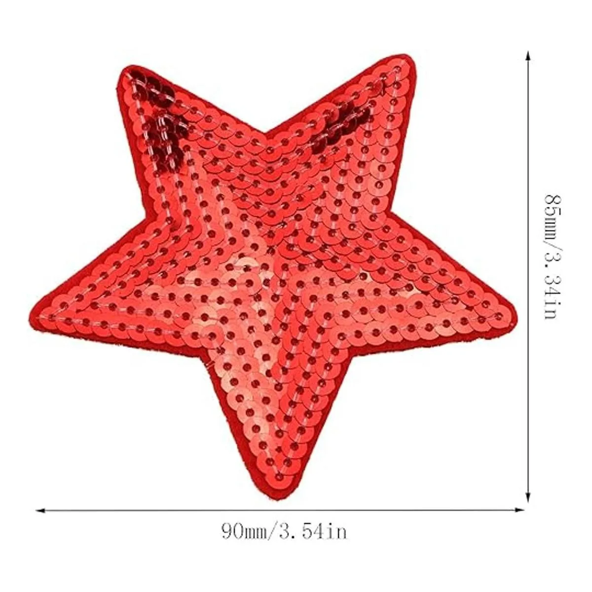 Material: poliéster y lentejuelas. Color: rojo. Forma: estrella de cinco puntas. Color: rojo. Tamaño: 3.5 x 3.3 in