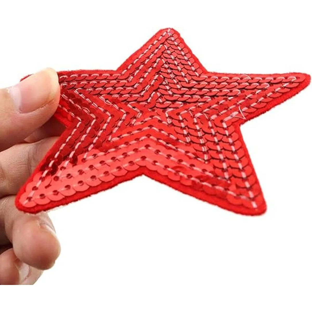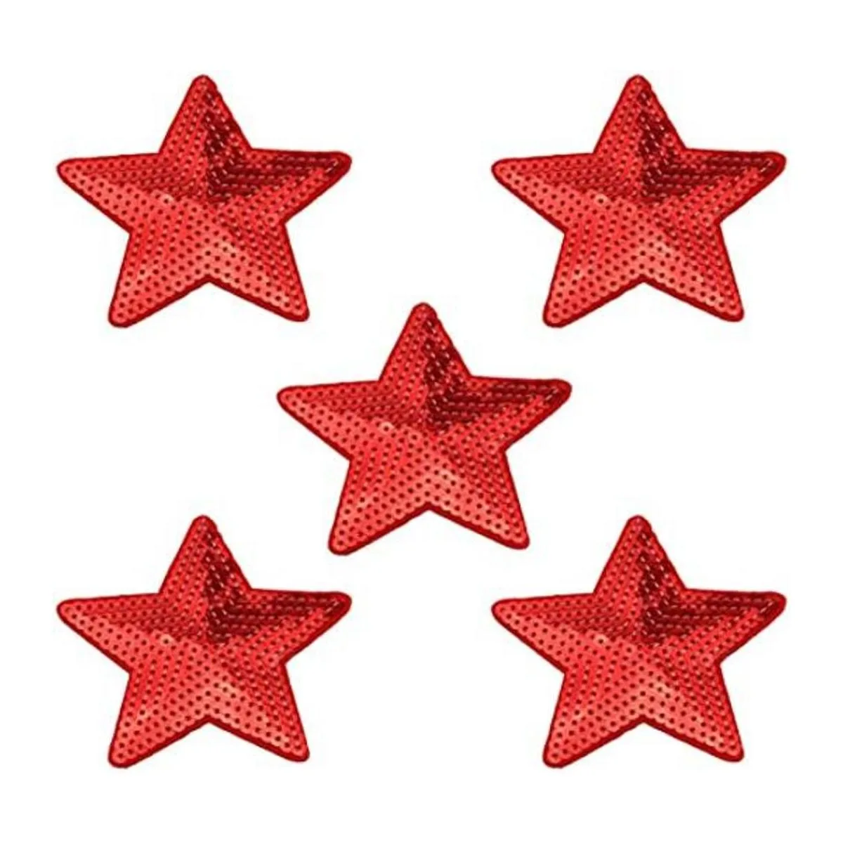 Eoutstanding 5Pack de parches de cinco puntas en forma de estrella de lentejuelas rojas Appliqued DIY pegatinas de costura ropa pantalones vaqueros mochila zapatos decoración