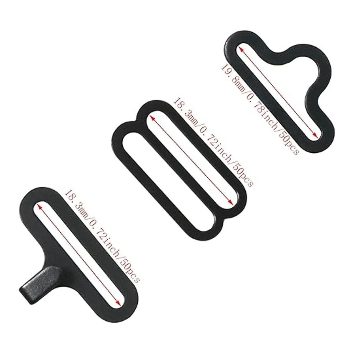El paquete incluye: 50 juegos de clips de corbata. Cada juego incluye: 1 gancho, 1 anillo de elevación y 1 riel deslizante.