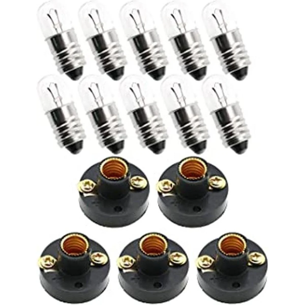 Eoutstanding Estudiante Experimento Iluminación DIY Accesorios 10pcs 6.3V 0.15A Tornillo Mini Bombilla y 5PCS E10 Mini Plástico Negro de Latón Puro Tipo de Tornillo de Bulbo Soportes de Lámpara Bases