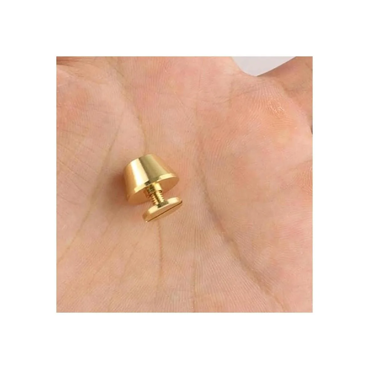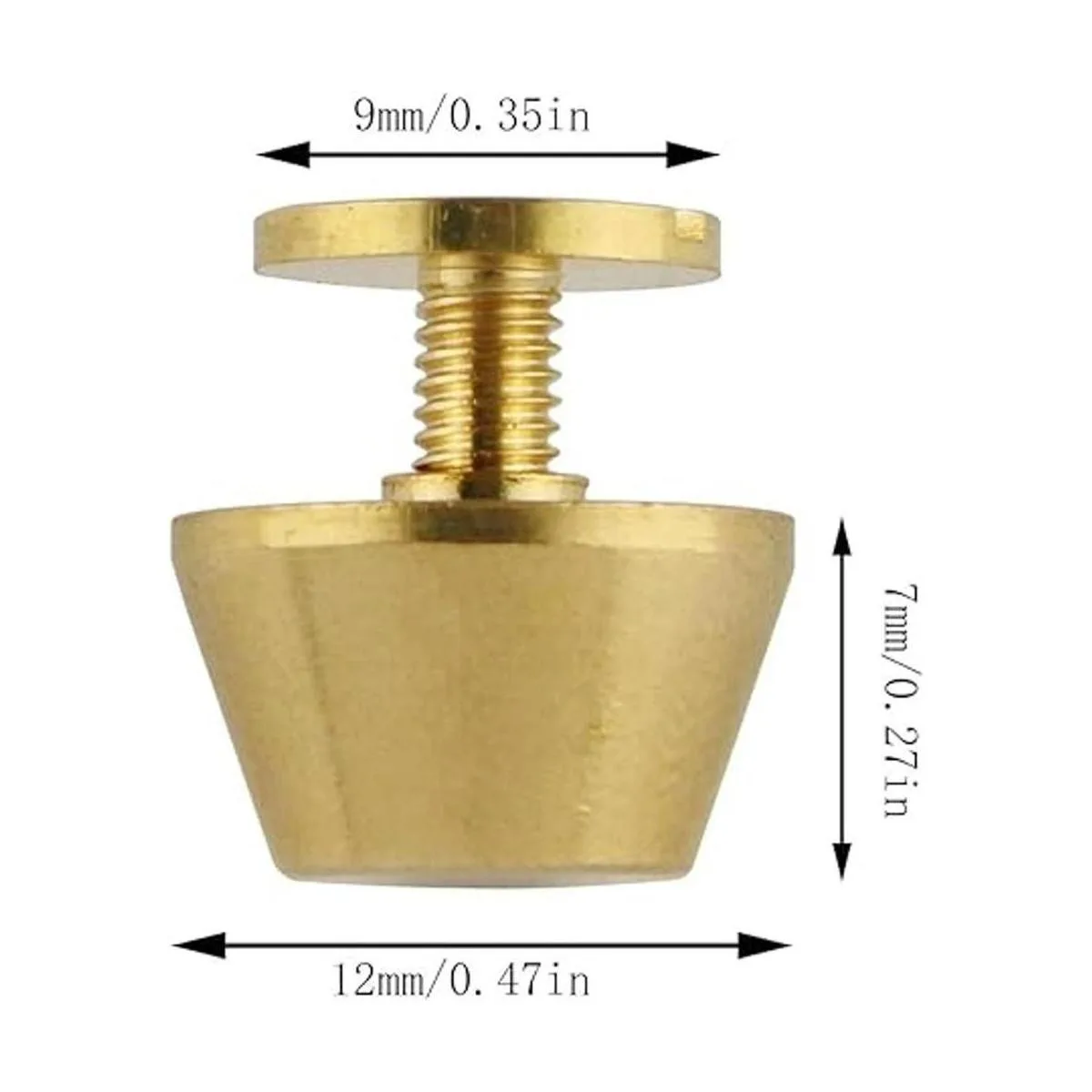 Color: dorado; diámetro superior de la cabeza: 0.354 in, diámetro de la base: 0.472 in, altura: 0.276 in