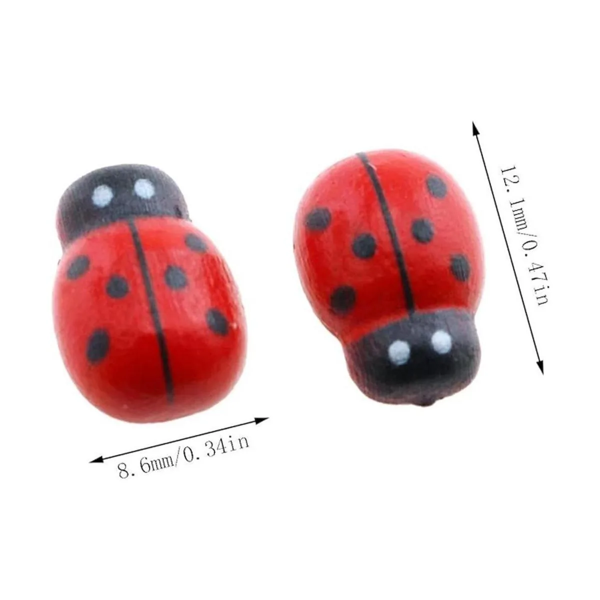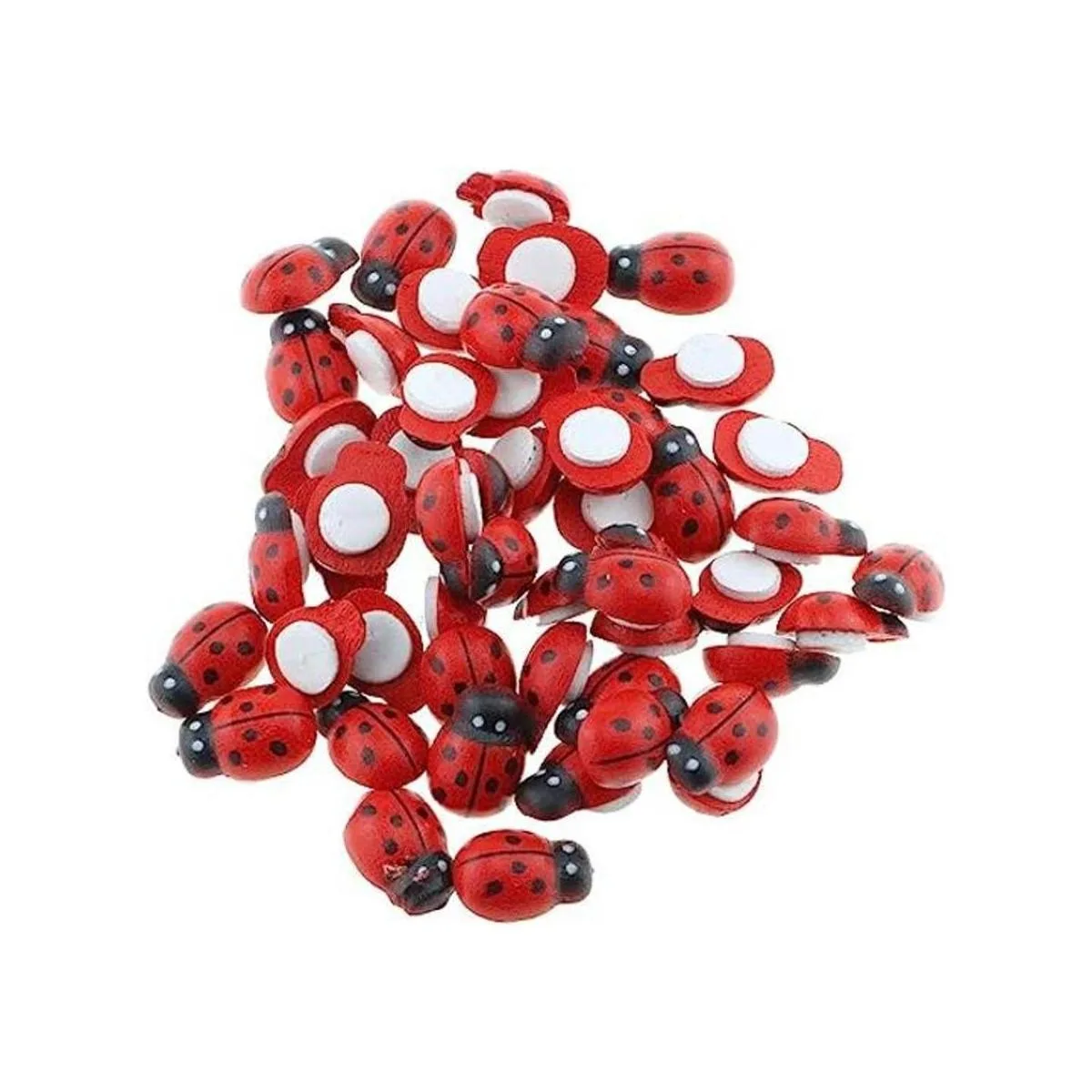Eoutstanding Lote de 100 pegatinas de mariquita de madera 3D micro rojo de mariquita plana autoadhesivas, para manualidades