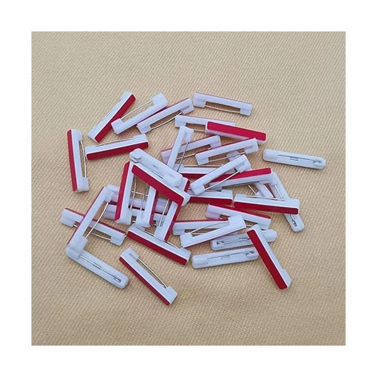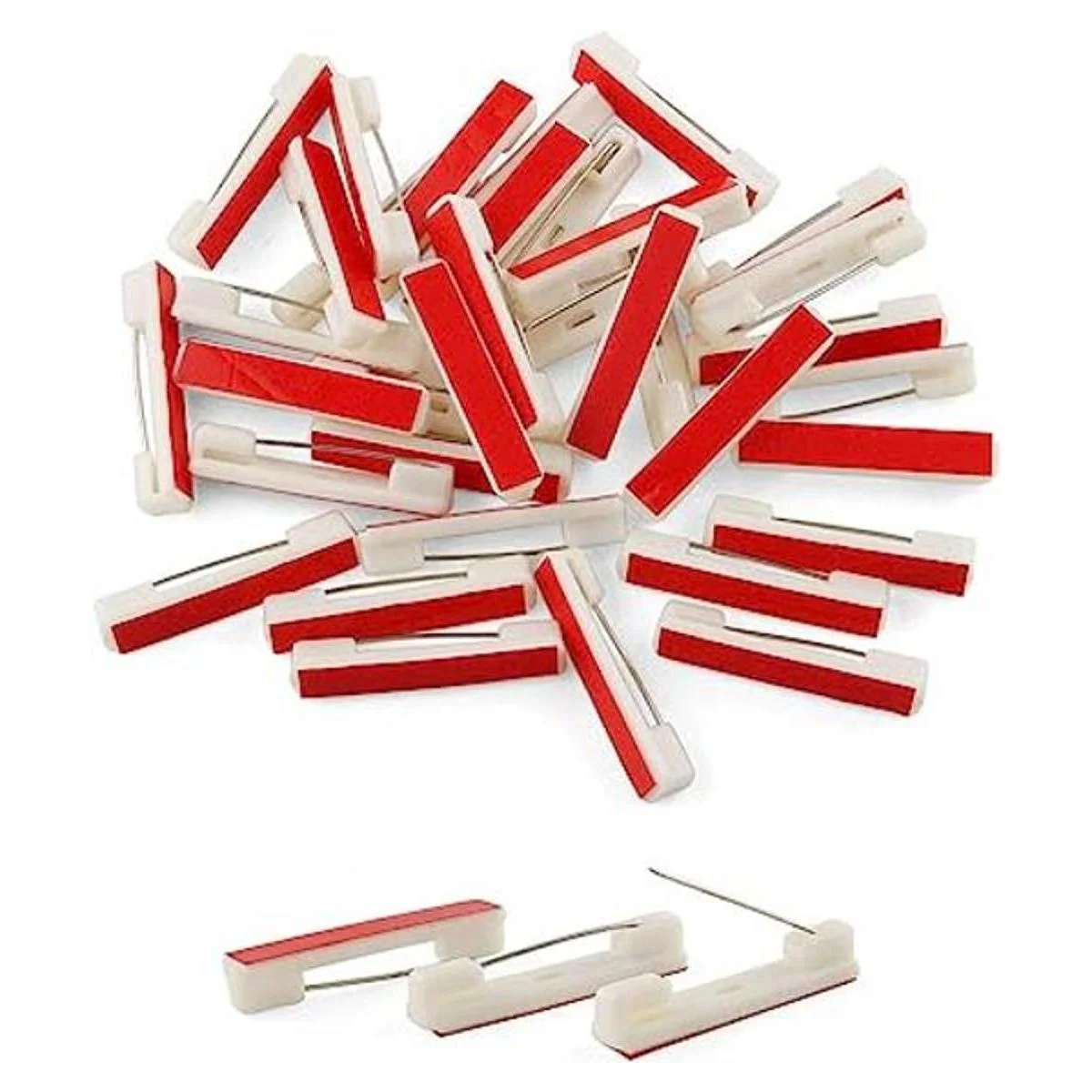 Eoutstanding Pasadores de seguridad autoadhesivos, 50 unidades, 1.4 in, color blanco adhesivo para insignias de identificación, cintas, etiquetas de identificación y manualidades