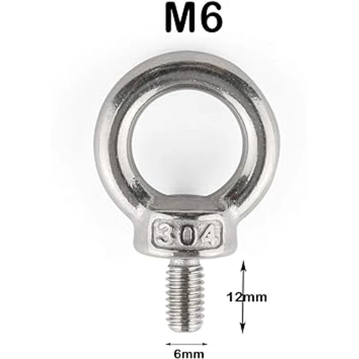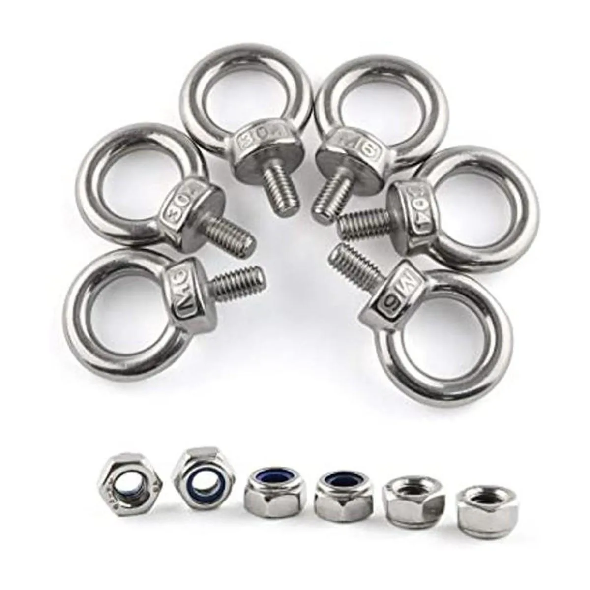 Eoutstanding Perno de ojal 6 unidades, M6 x 12, rosca macho, tuercas de bloqueo de nailon M6 304