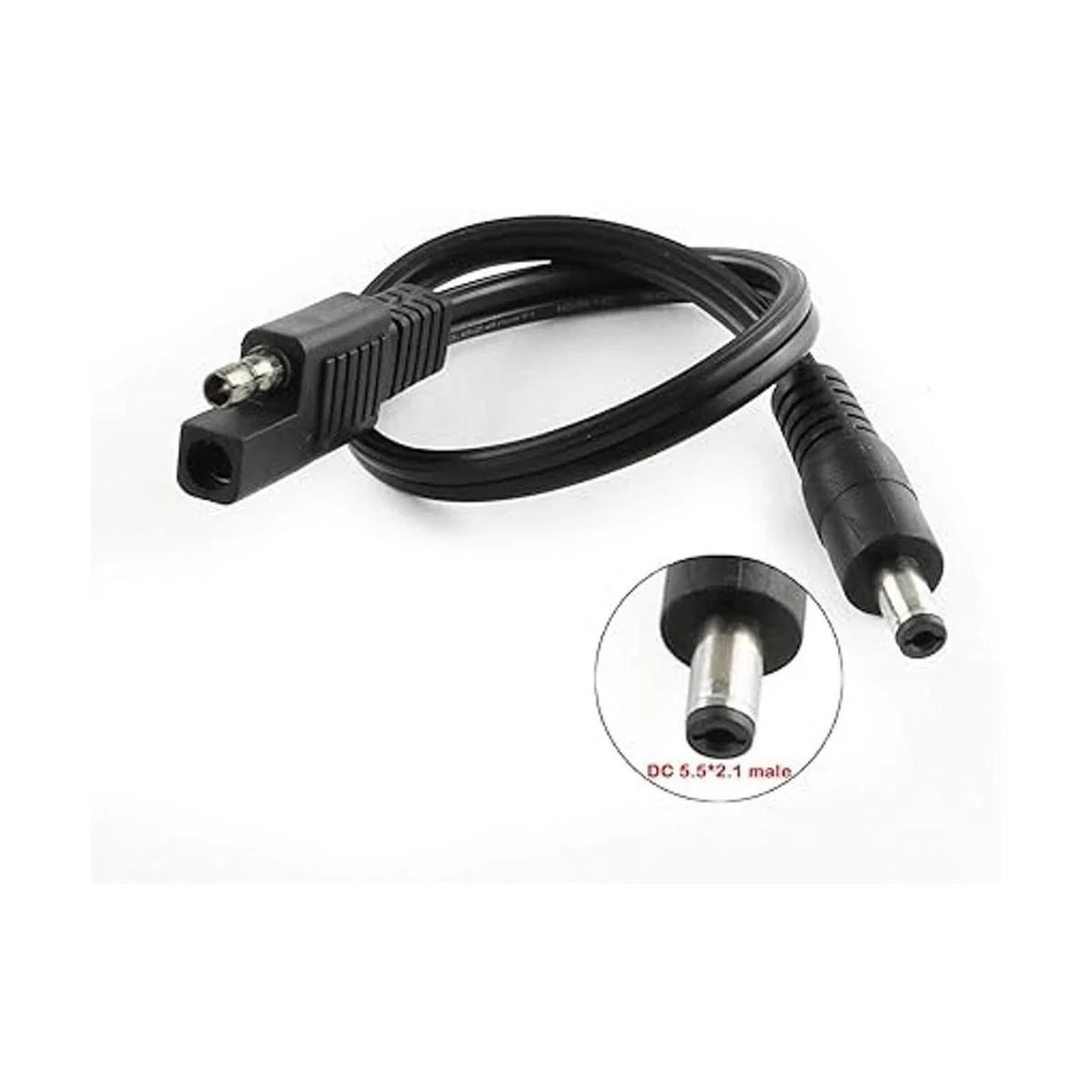 Material: cobre 20 AWG. Interfaz de entrada: DC 55 x 21 macho enchufe. Interfaz de salida: enchufe SAE. Longitud: 7.9 in. El paquete incluye: 1 PC macho a SAE Plug Cable