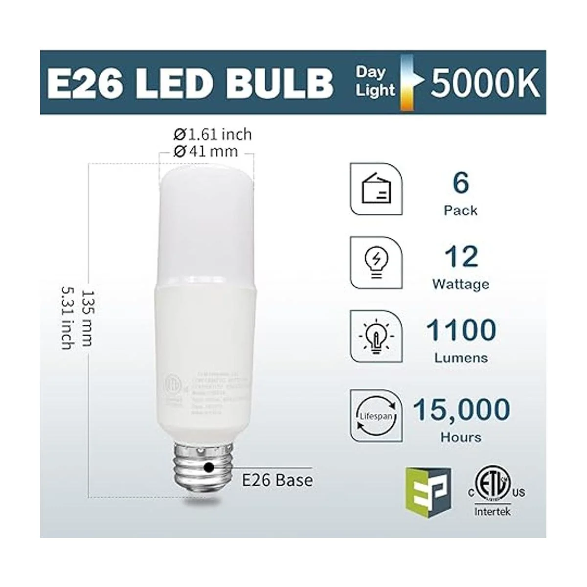 EP Bombilla LED equivalente a 75 W, 12 W, 1100 lúmenes, 5000 K, base media E26, no regulable, bombillas brillantes para el hogar, dormitorio, lámpara de oficina, paquete de 6