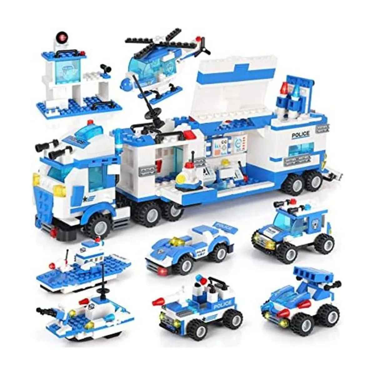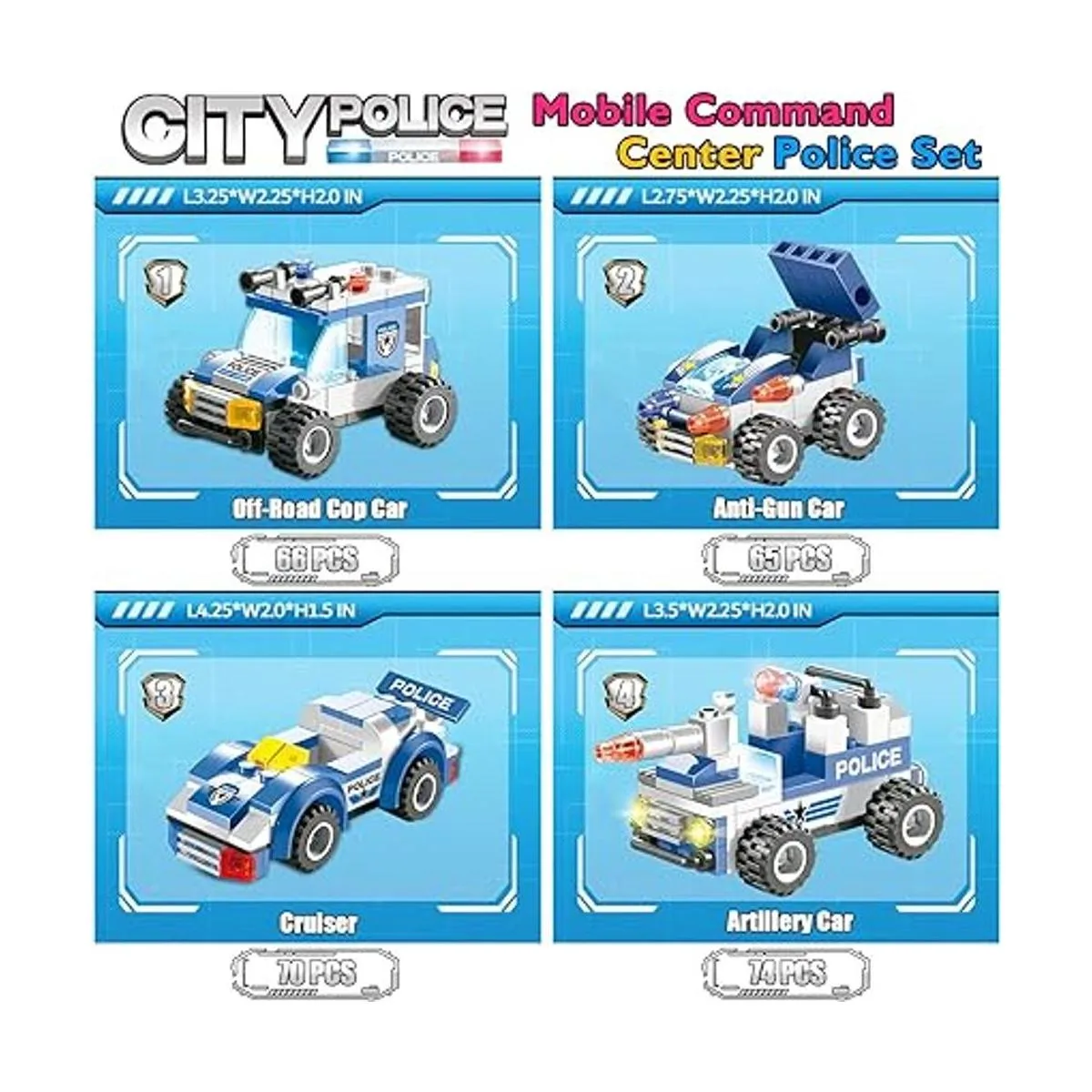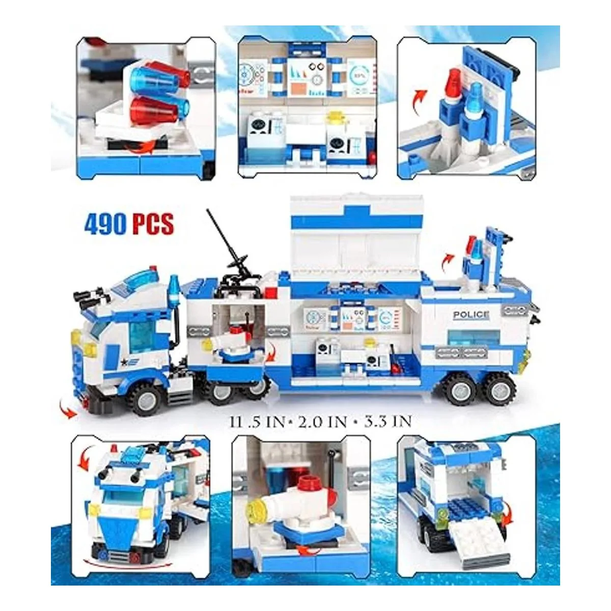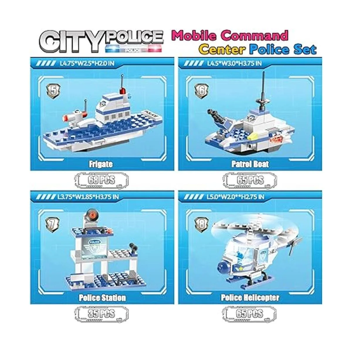 High Simulation Detail Design Give hours of thrilling police adventure fun for kids with this ultimate mobile command center police toy. City Police Mobile Command Center Truck comes with Artillery, Radar, Command room, Missile launcher, Jail cell, and more cool cop features Also Police station, Helicopter, Cruiser, Missile Vehicle, Offroad police car, Artillery car, Patrol boat, Frigate, and accessories.