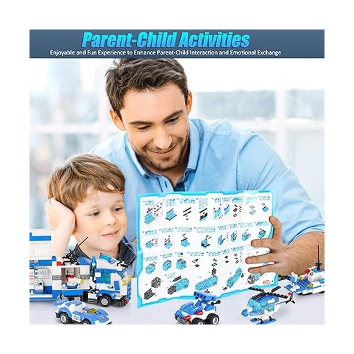 EP Ejercicio N Play, kit de construcción de la policía de la ciudad, 8 en 1 City Police Mobile Center Building Ladrillos juguete con coche de policía y helicóptero con caja de almacenamiento para niños y niñas 612