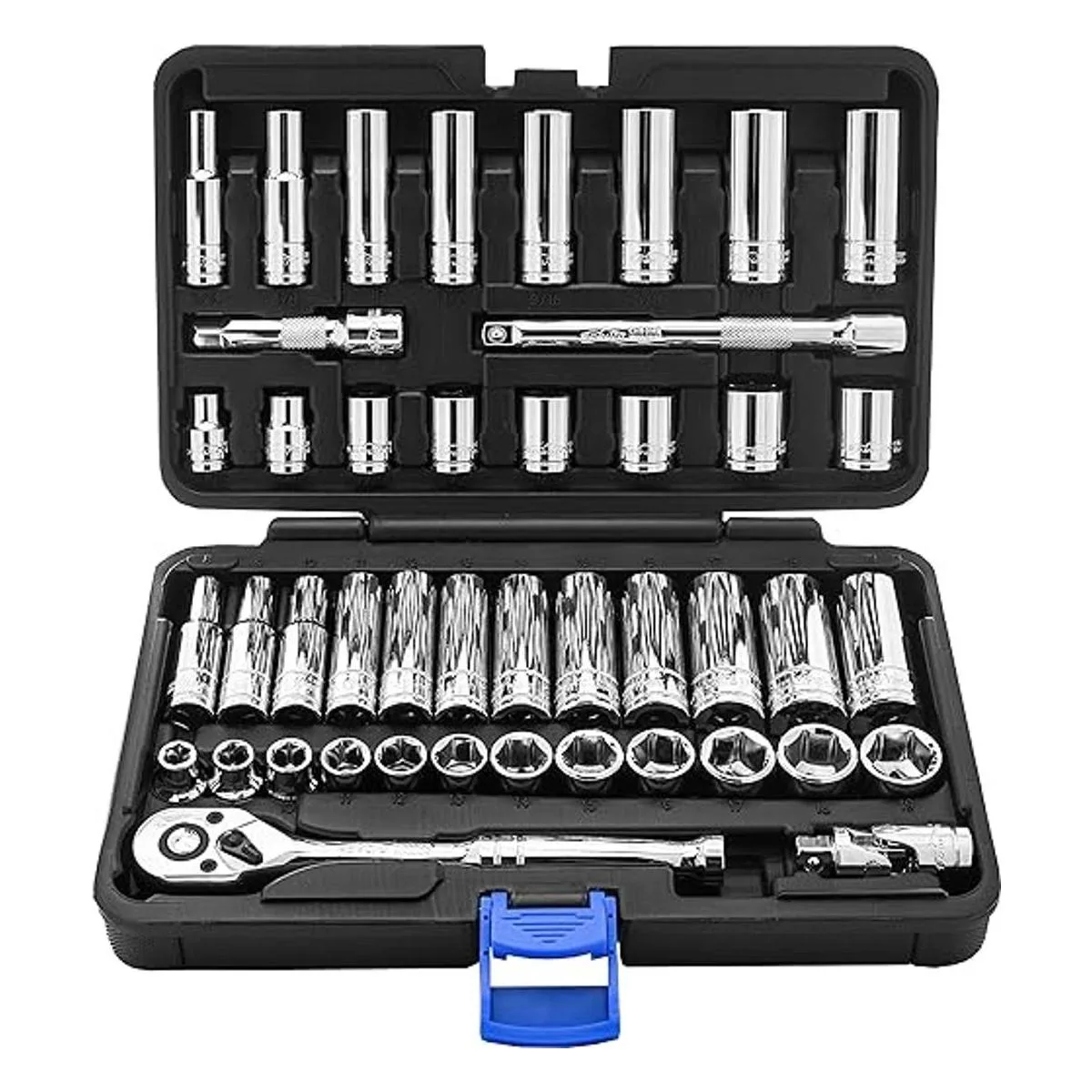 EPAuto Juego de 45 llaves de 38 pulgadas con trinquete de cabeza de pera de 72 dientes