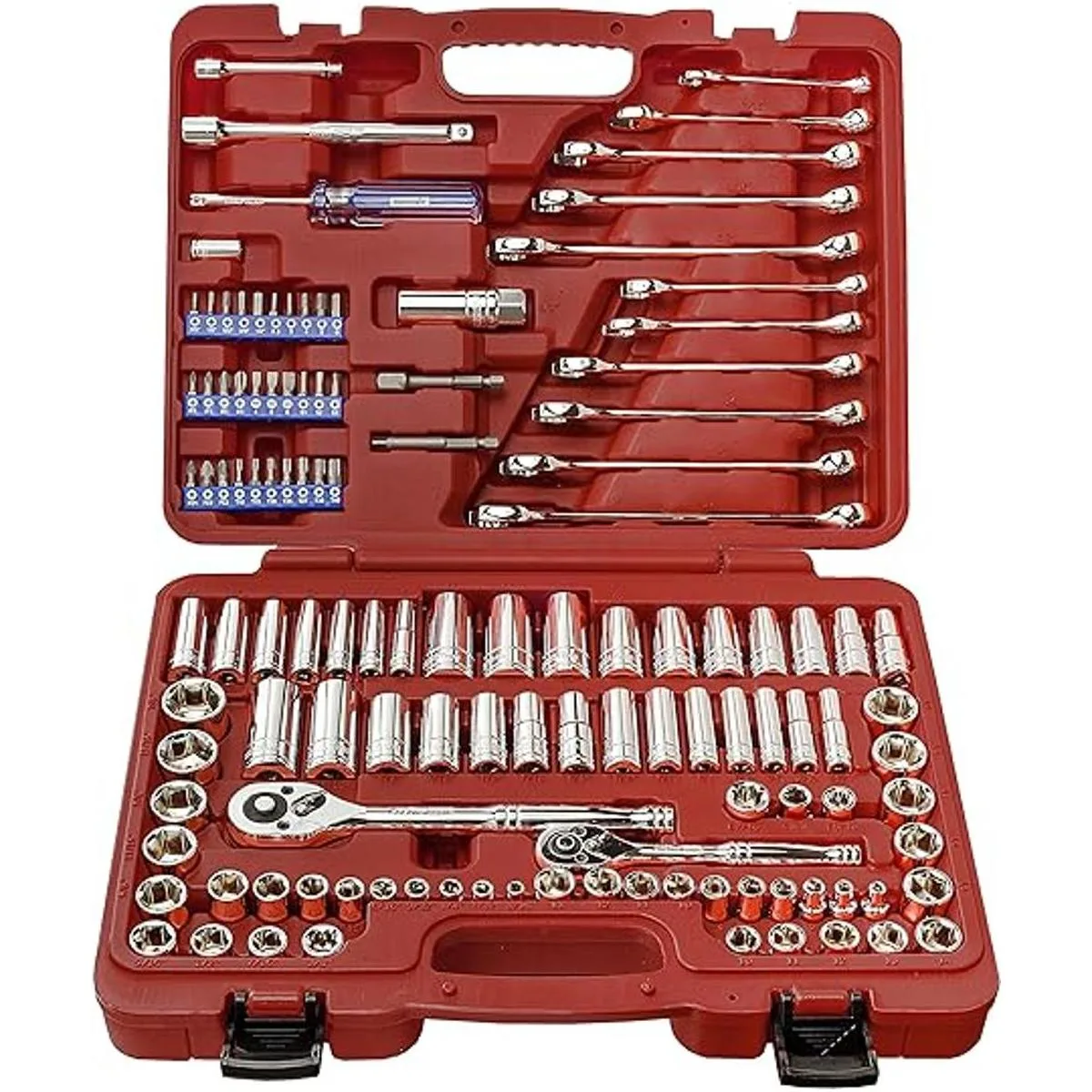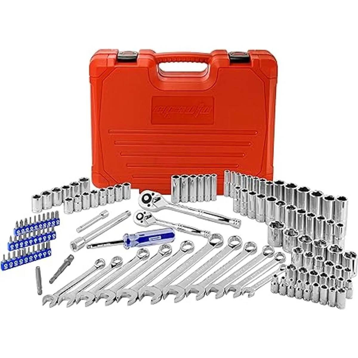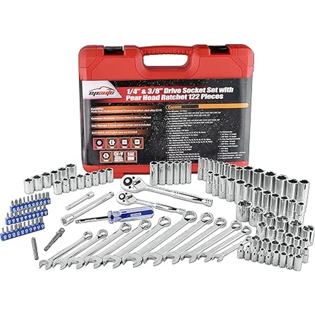 EPAuto Juego de herramientas mecánicas para llaves de llaves de llaves de llaves de llaves de conducción, SAEmétricas, 122 piezas