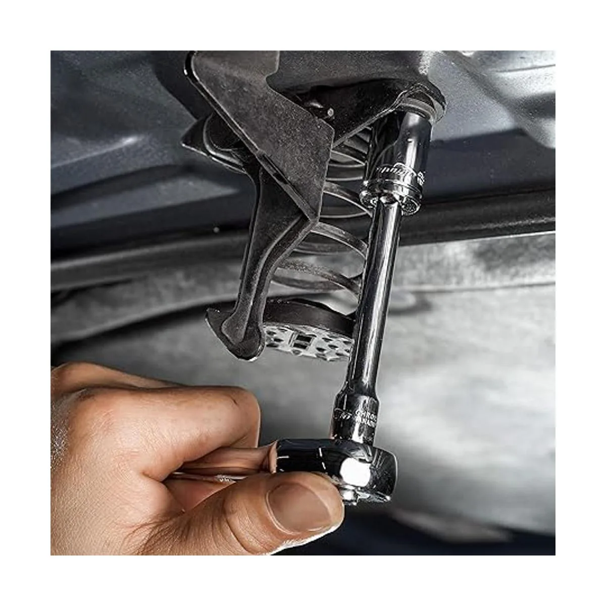 Incluye: accionamiento de trinquete, llave abierta, soporte de brocas de transmisión, mango giratorio, enchufes, brocas de tornillo, barra de extensión y adaptador