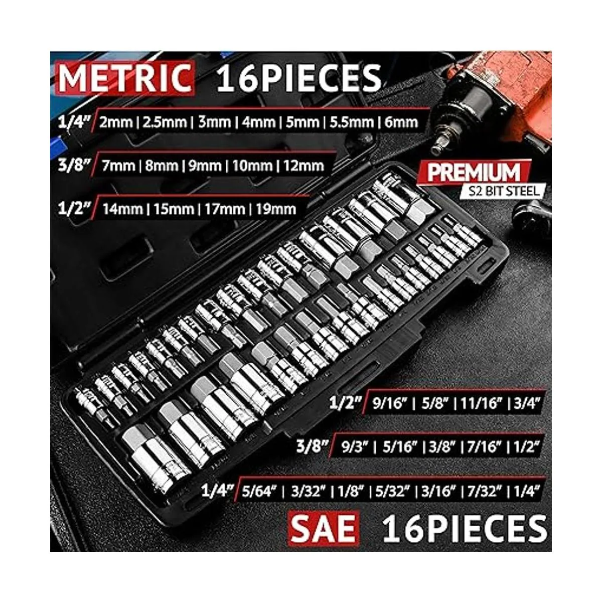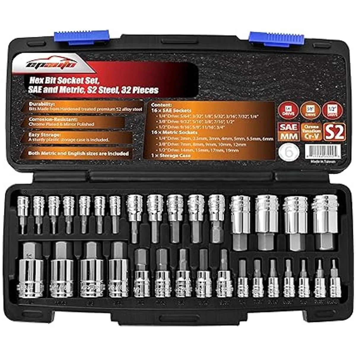 EPAuto Juego de llaves hexagonales de 32 piezas, SAE y métrico, acero S2 y CrV