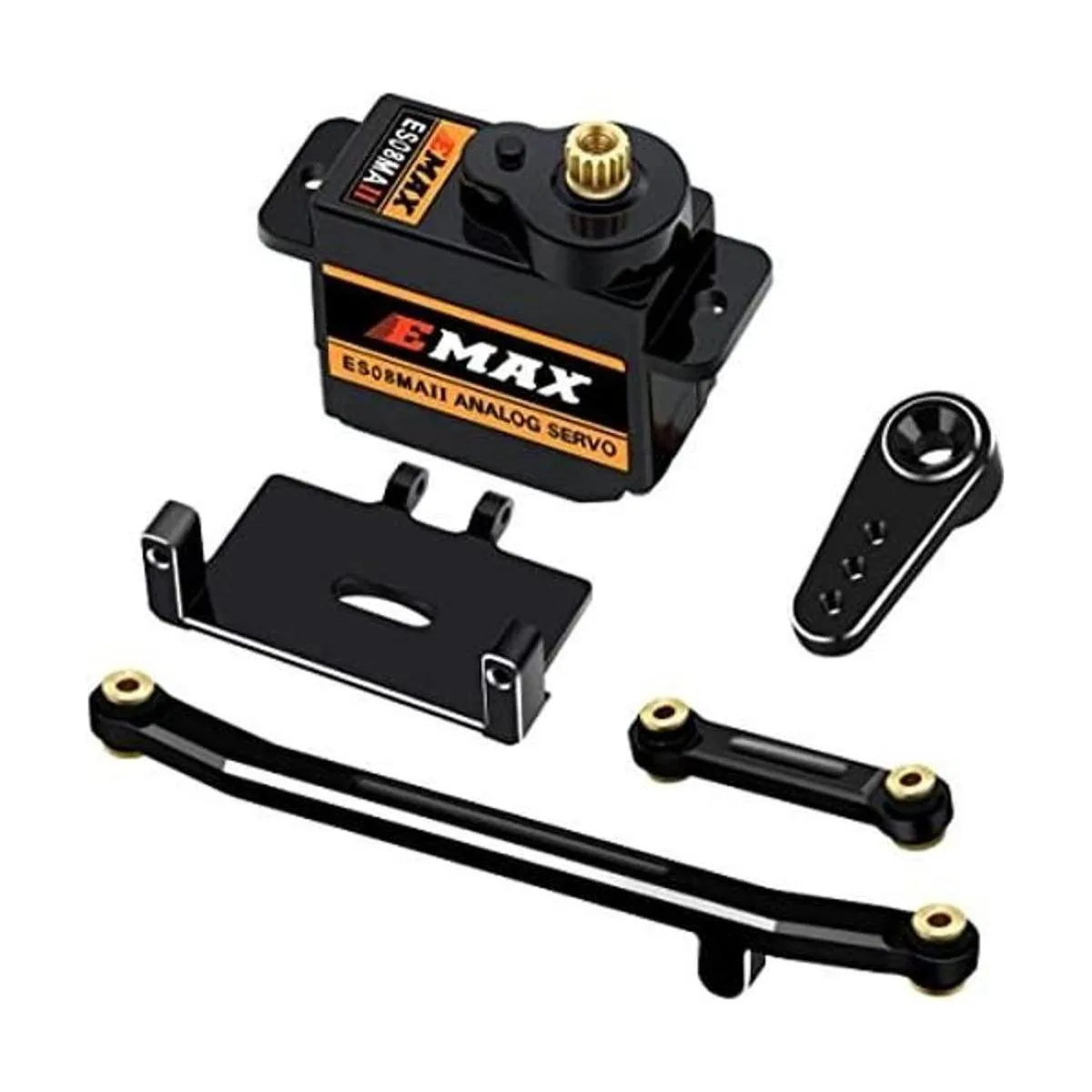 Lo que obtienes 1 servo Emax ES08MAII de 0.42 oz, 1 soporte de montaje servo, 1 brazo servo, 1 enlace de dirección.