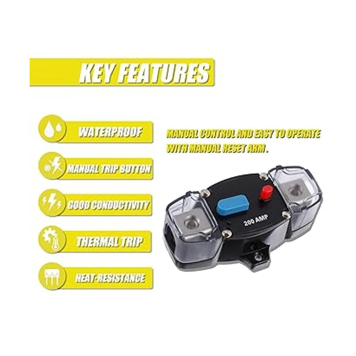 EPLZON Disyuntor de auto recuperación de 200 A 1248 voltios CC con botón de reinicio manual para vehículos recreativos, lanchas marinas 200 amperios