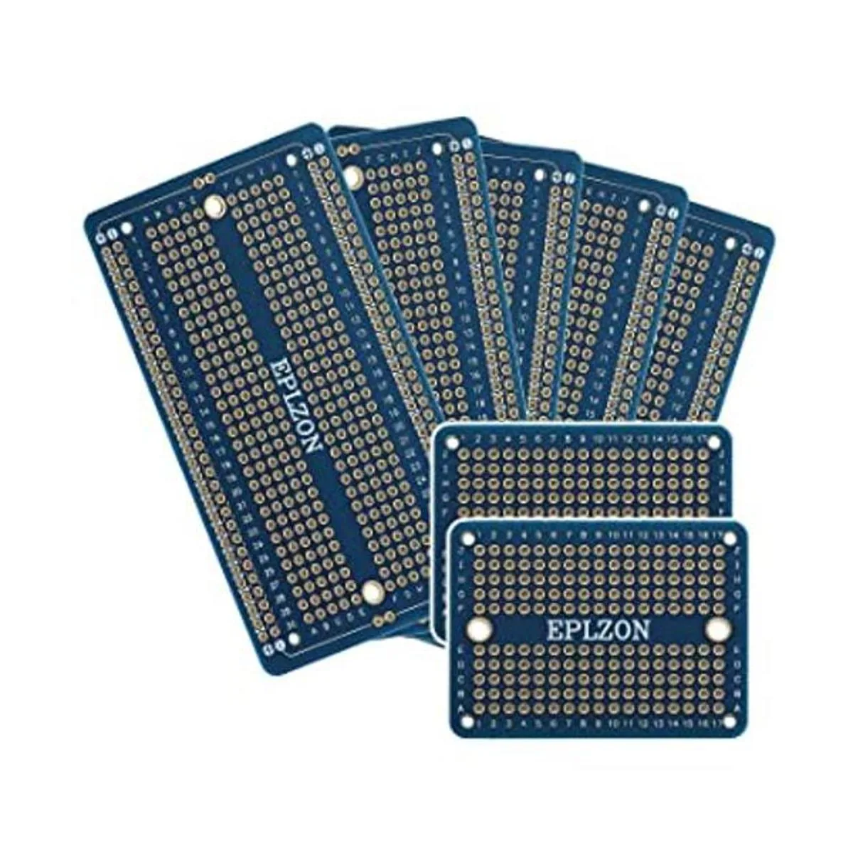EPLZON Placa de pan soldable PCB chapada en oro para proyectos electrónicos de bricolaje compatible con proyectos de soldadura Arduino de 2.05 x 3.5 pulgadas paquete de 5 2 mini tableros, azul