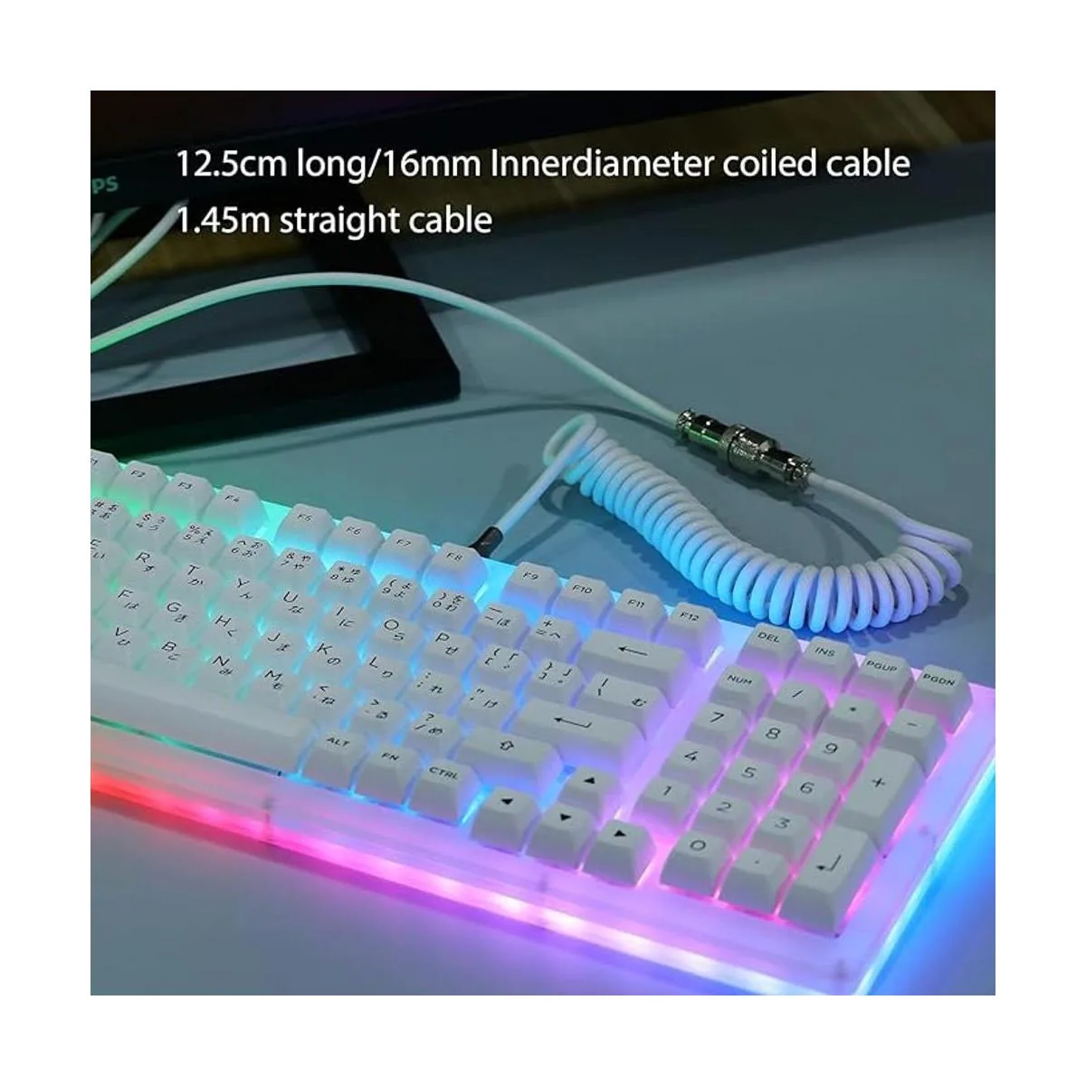EPOMAKER Mezcla de 5.9 ft en espiral tipo C a USB A, cable espacial de teclado mecánico de poliuretano termoplástico con conector de aviador desmontable para teclado de juegos y teléfono celular blanco