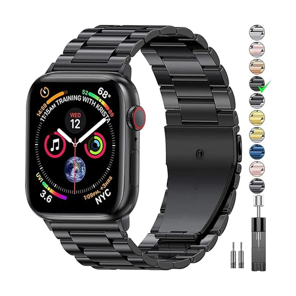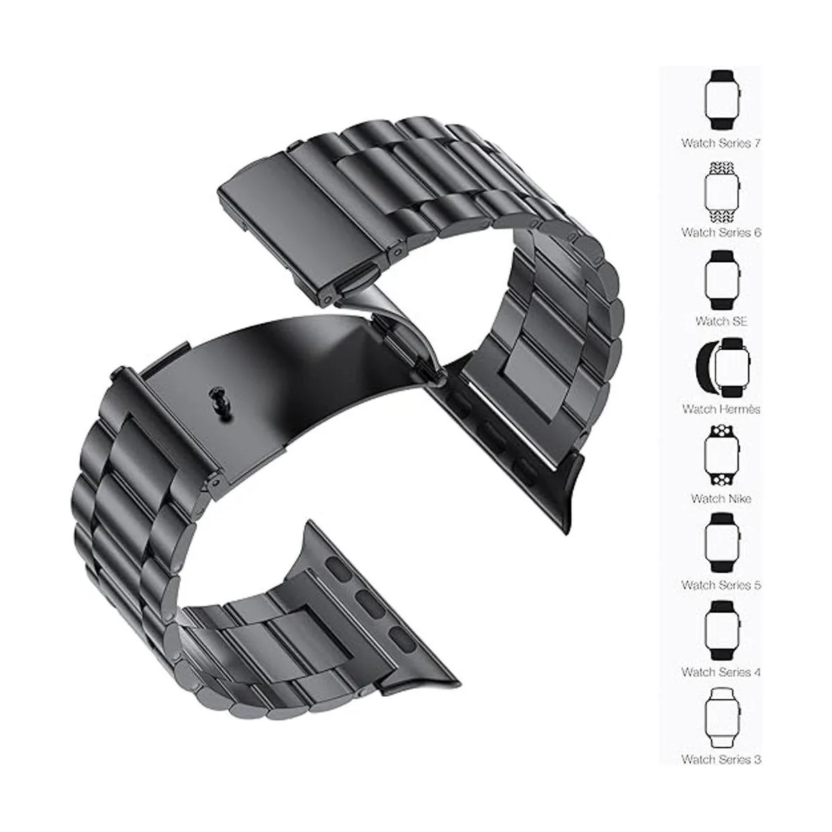 EPULY Compatible con Apple Watch Band de 45mm 44mm 42mm 41mm 40mm 38mm, correa de metal de acero inoxidable para iWatch Strap SE Series 7 6 5 4 3 2 1 hombres negro, 45mm 44mm 42mm