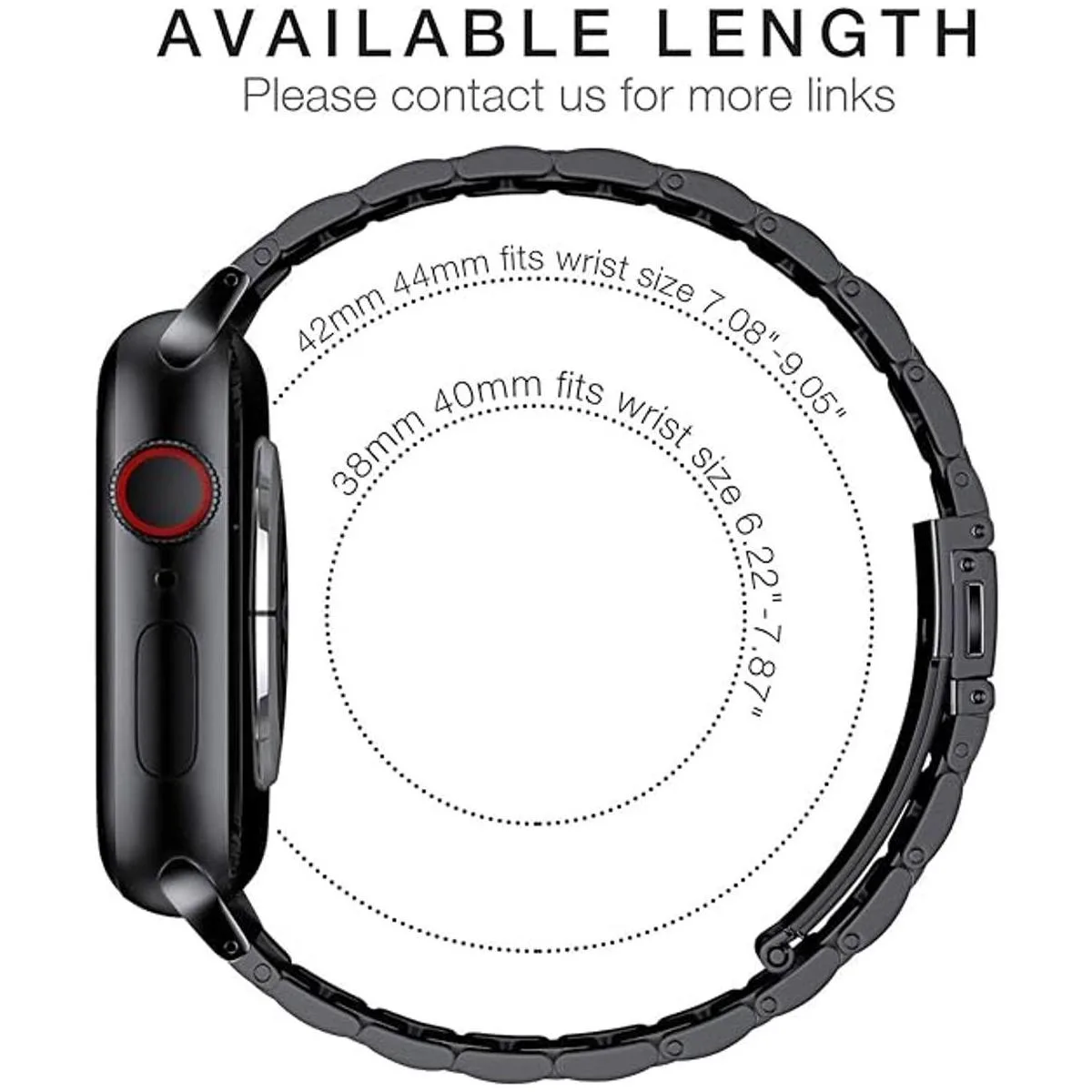 Longitud Ajustable : 45mm 44mm 42mm, se adapta a muñecas de 7.08 a 9.05 pulgadas 180mm 230mm. Peso: 208 gramos Es fácil cambiar el tamaño dividiendo eslabones. Cómo quitar e instalar los enlaces Por favor, mira nuestro video y manual de instrucciones idioma español no garantizado.