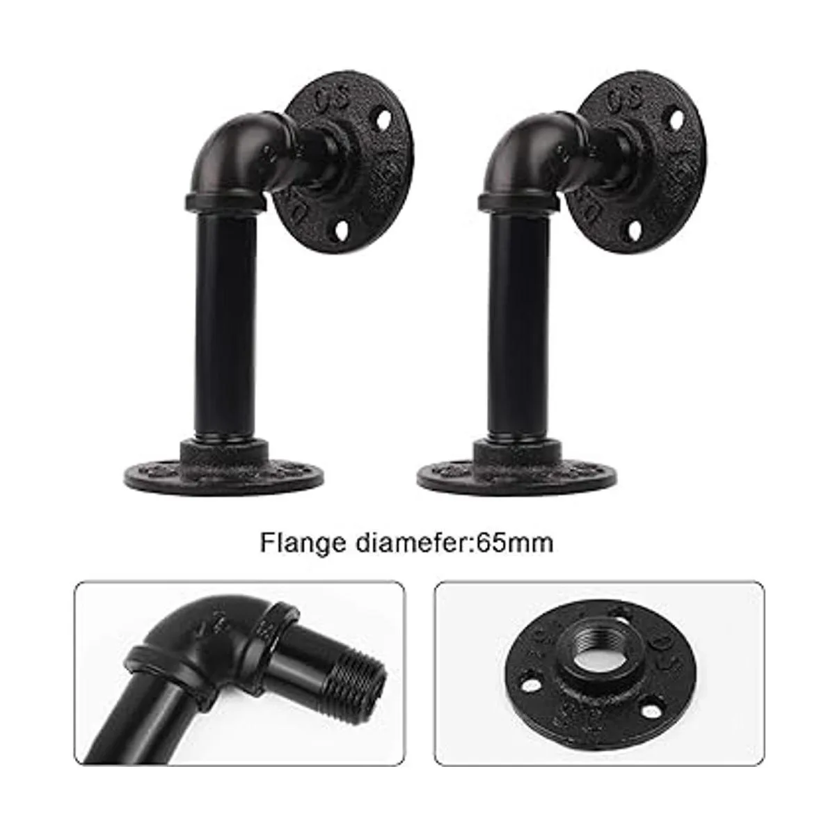 El juego de 6 soportes de estante de tubería está hecho de acero de hierro maleable, pintado en negro, puede soportar 55.1 lbs con dos soportes de estantes. Mezcla el aspecto de tuberías industriales con tu decoración moderna, comprado como un paquete también puede ayudarte a ahorrar más del 30 que ir a Home Depot, estos soportes pueden montar 3 decoraciones de estantes flotantes vintage.