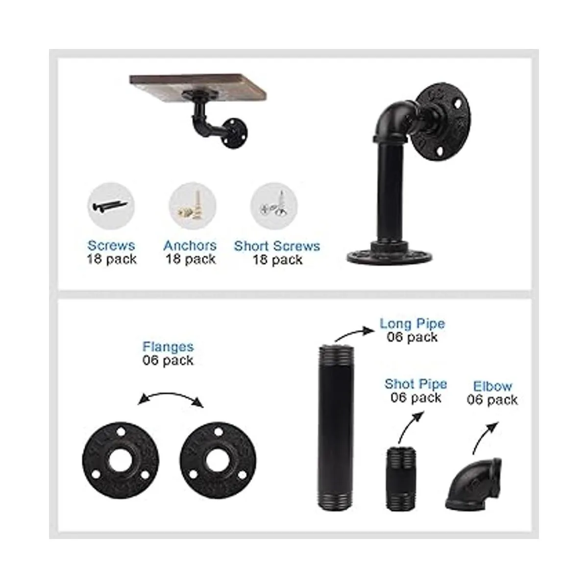 El paquete incluye: 6 soportes de estante de tubería y accesorios estante de madera no incluido