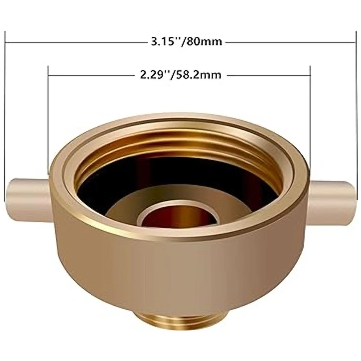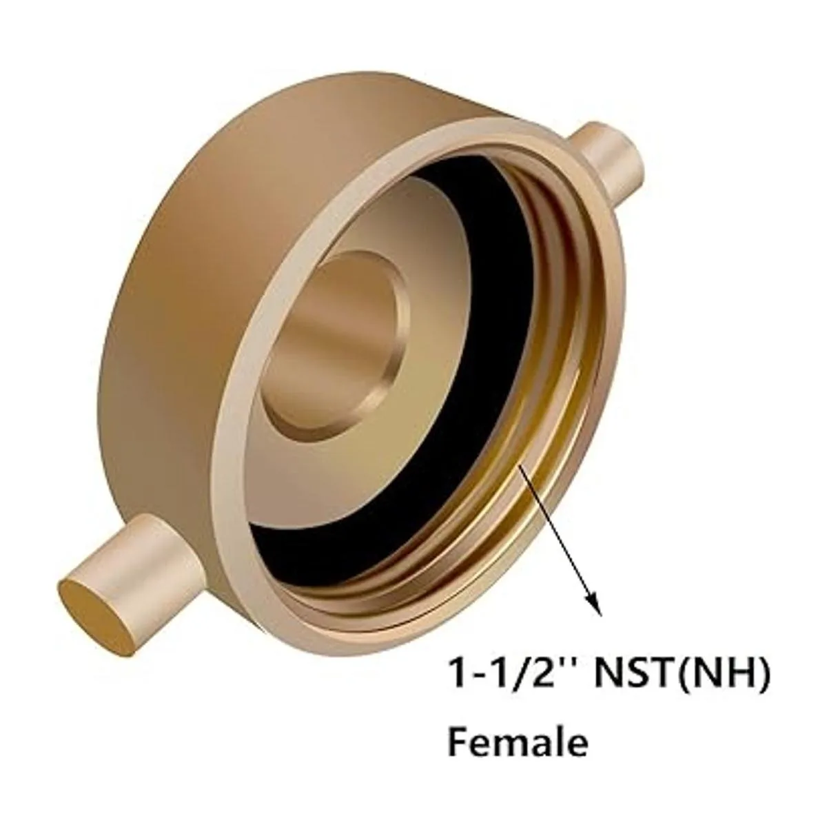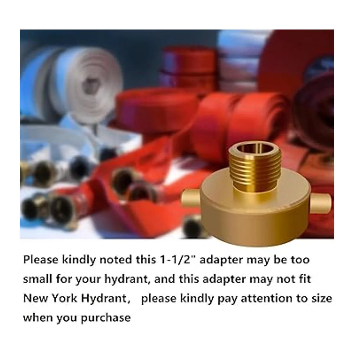 Tamaño: adaptador de manguera de latón a manguera de jardín con rosca estándar nacional NST hembra de 11/2 pulgadas en un extremo para conectar a la boca de agua y un macho de 3/4 pulgadas GHT en el otro extremo para conectar a una manguera. Perfecto para fijar a la boca de incendios.