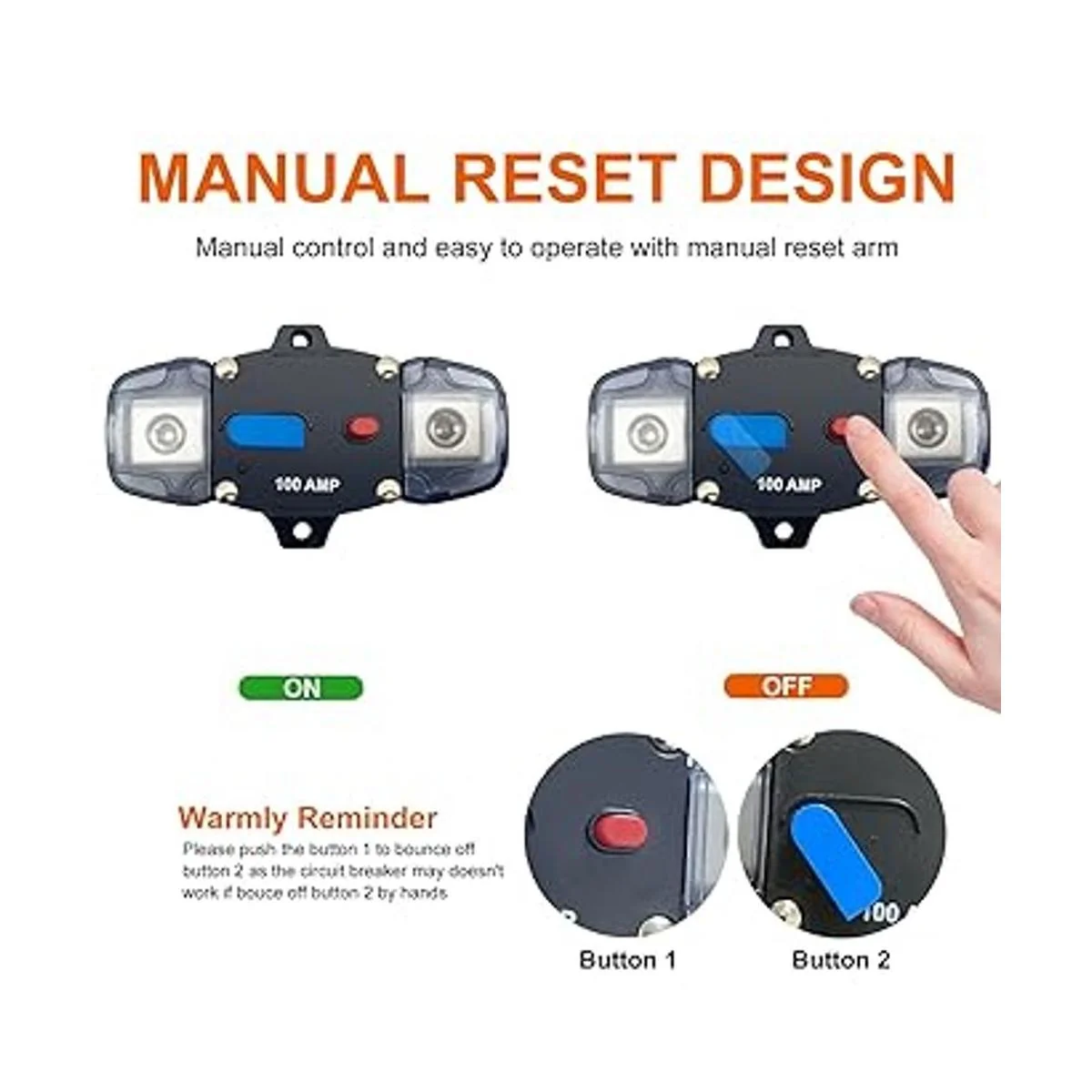 Erayco Disyuntor de 80 amperios con reinicio manual, 1248 voltios CC, motor de arrastre de calibre 08 para automóvil, estéreo de audio en línea, soportes para bloques de fusibles inversor para automóvil, caravana, barco marino 80A