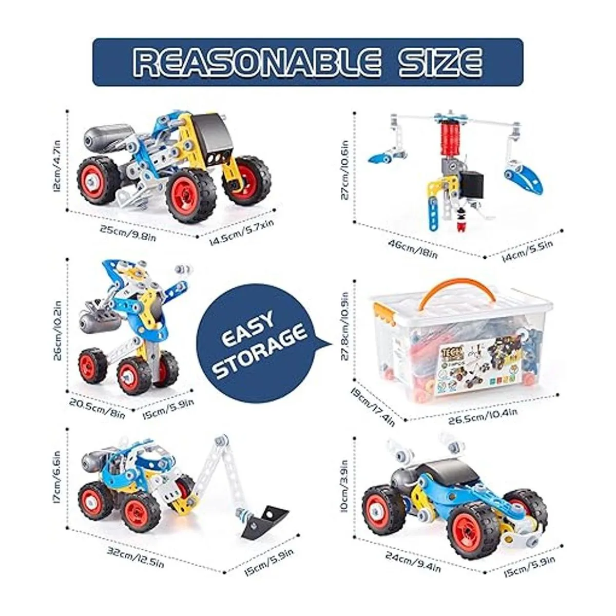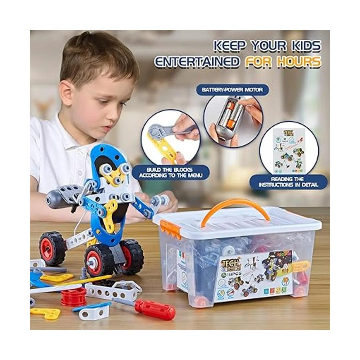 Erector Juego de juguetes para niños de 6 a 12 años, juguetes de construcción para niños de 4 a 8 años, juguetes STEM 5 en 1 de 4 a 7 años con motor de energía eléctrica para niños, juguetes de construcción para niños de 5 a 8 años de edad, 113 juguetes DIY para niños de 6 a 8 años