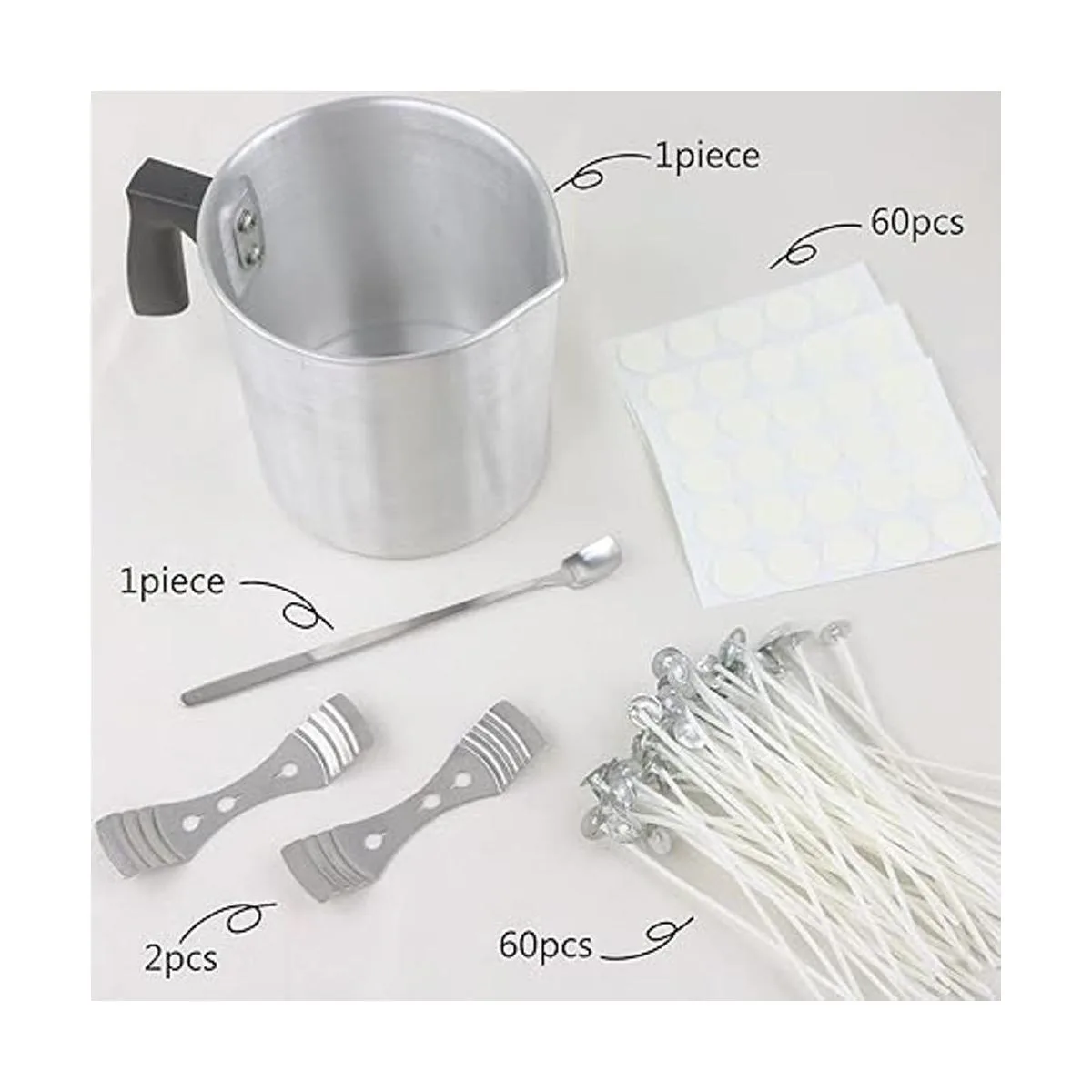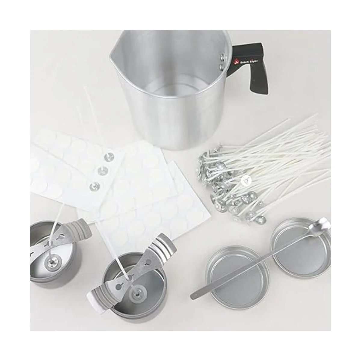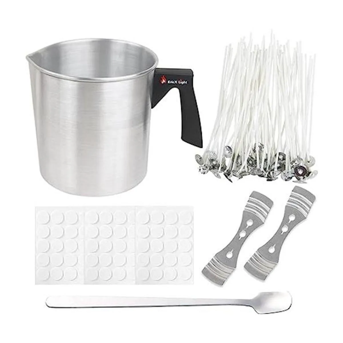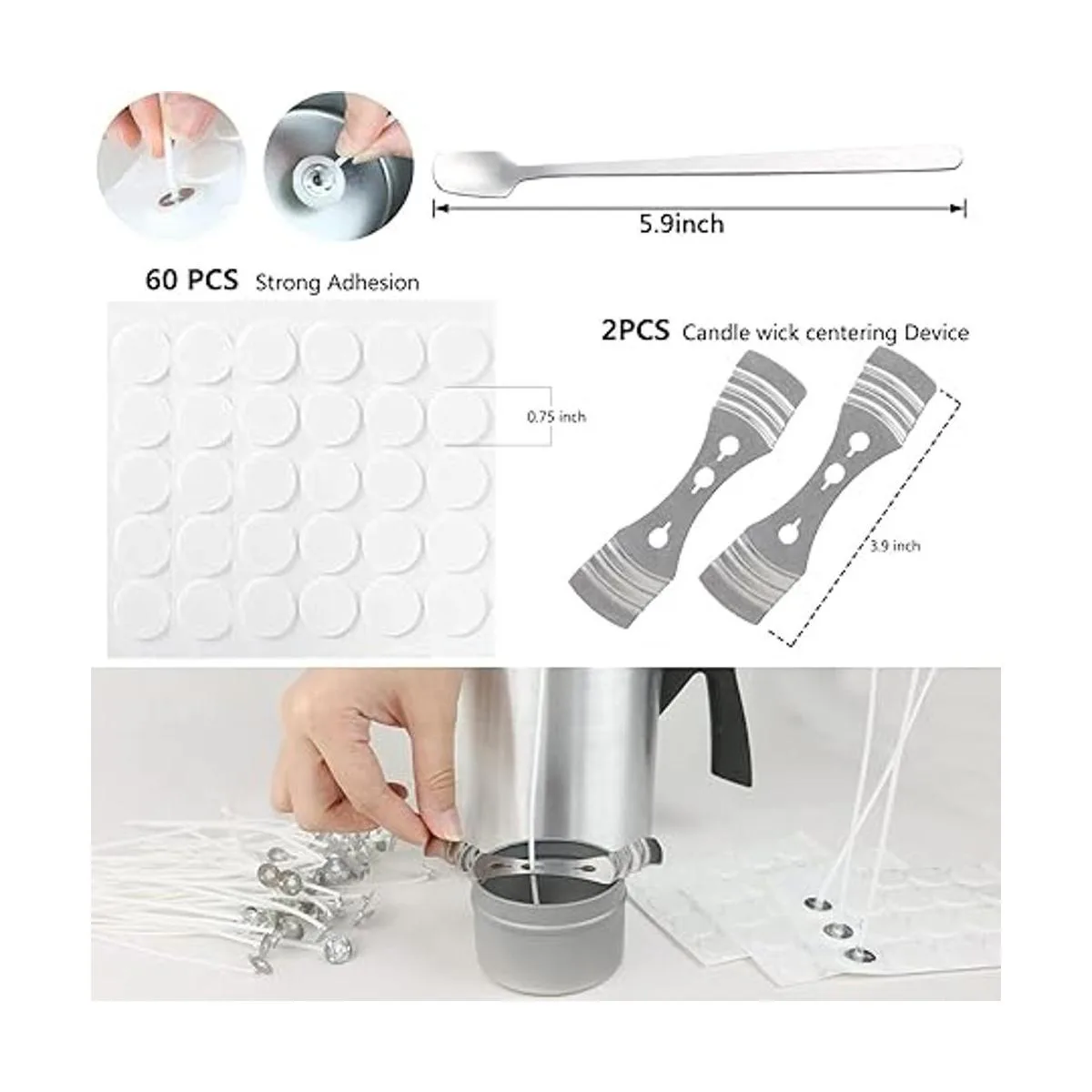 EricX Light Kit de fabricación de velas, 60 mechas de vela, 60 calcomanías de mechas de vela, 1 olla de vertido de cera de vela, 2 dispositivos de centrado de mechas de 3 agujeros, 1 cuchara de mezcla, herramientas de manualidades para velas de bricolaje