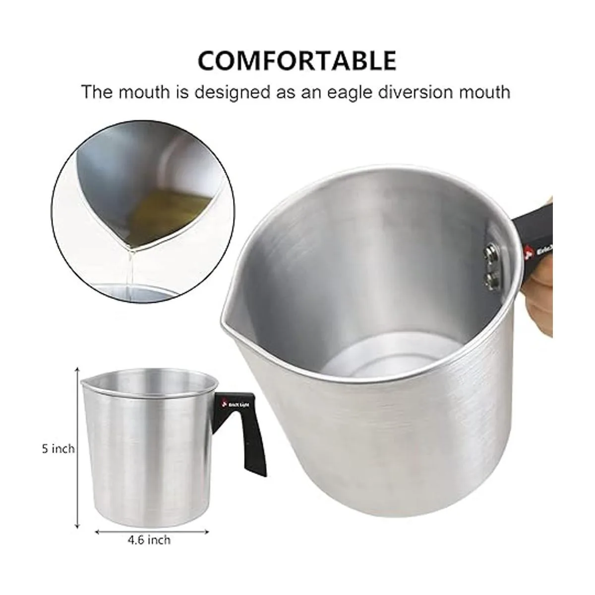 Jarra para derretir cera: 5 pulgadas de alto por 4.6 pulgadas de diámetro puede contener hasta 2 libras de cera derretida. Con construcción de aluminio sin costuras, excelente conductividad del calor ayuda a que la cera se enfríe rápidamente. Antiadherente, fácil de lavar con agua y jabón.