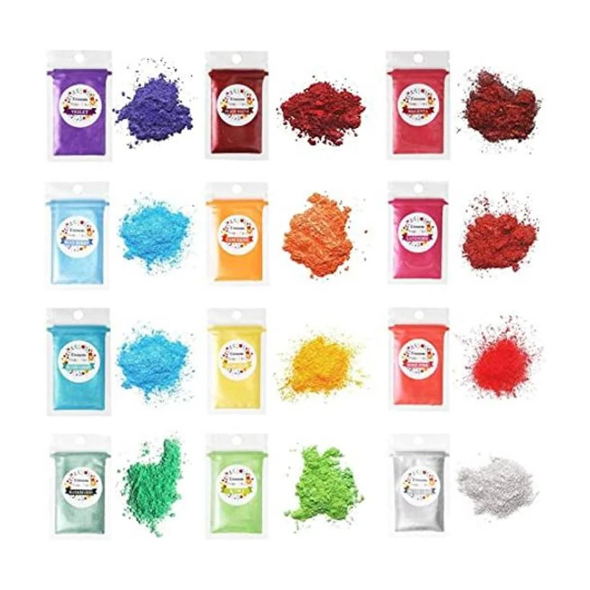 Erosom 24 colores mica en polvo para pigmentos de jabón, tinte, colorante, juego de colorantes para hacer jabón, 0.2 onzas, seguro para la piel, para fabricación de bombas de baño, velas, tinte de resina no teñido, 4.83 onzas en total, brillante