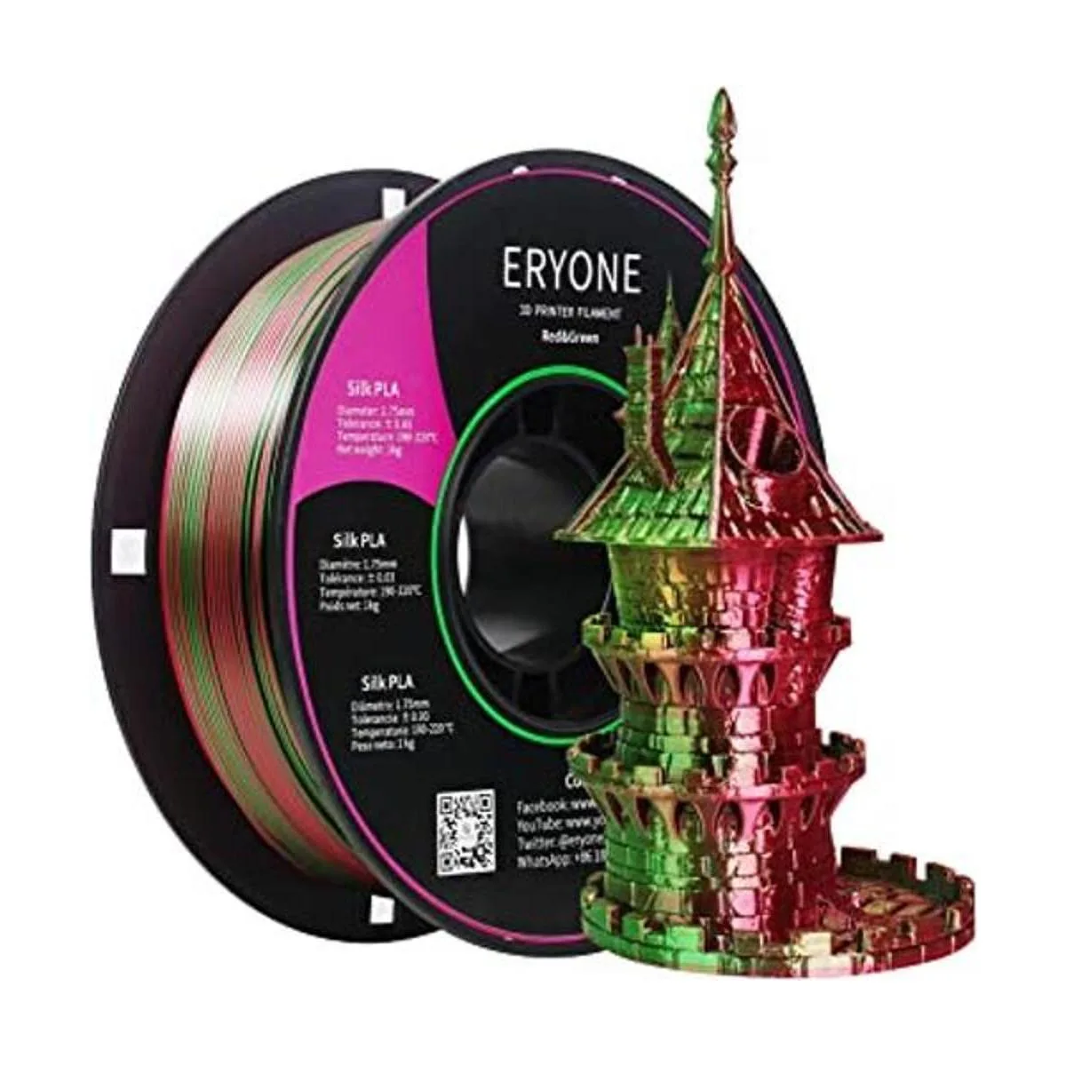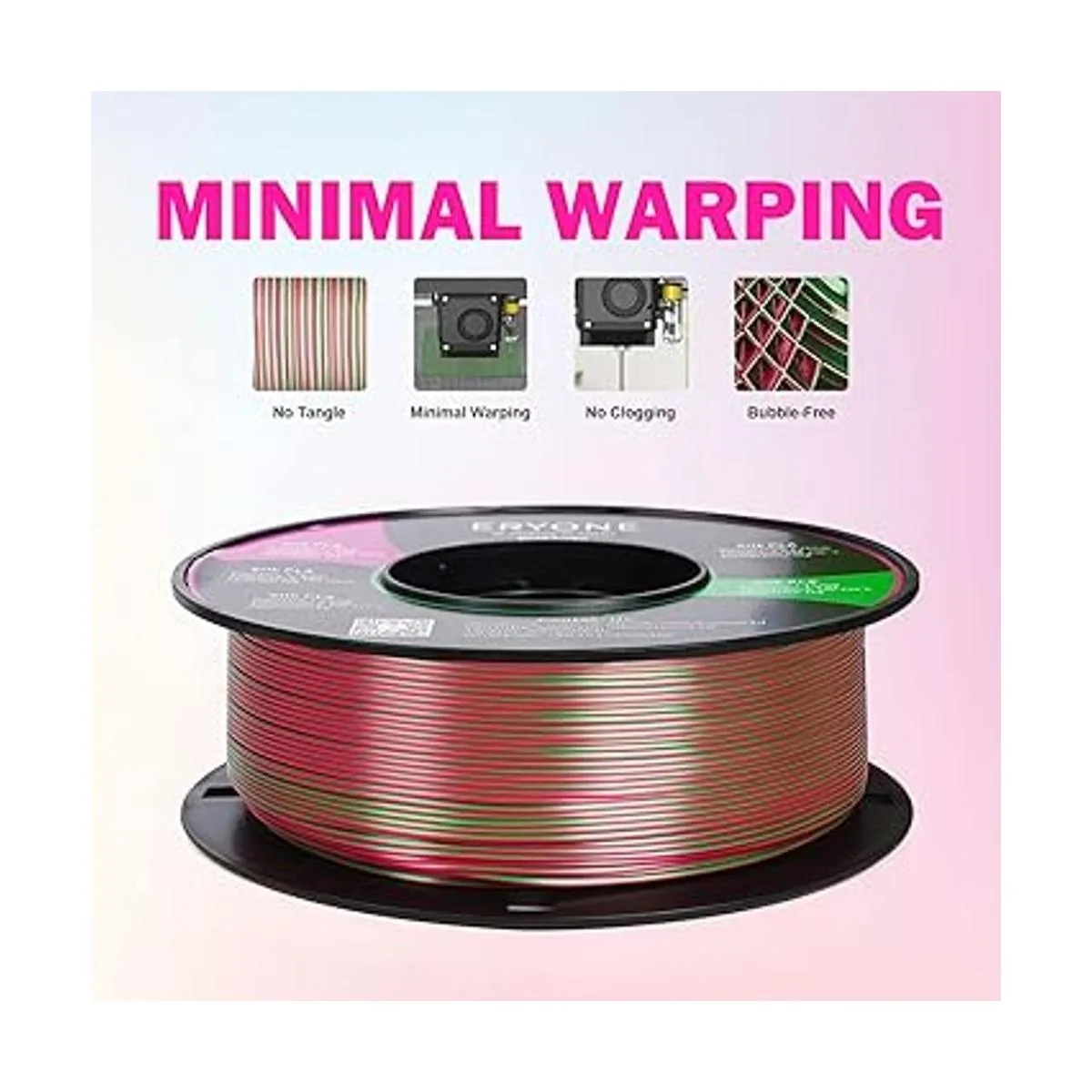 1. Filamento dicromático de seda: el filamento de seda de doble color ERYONE está hecho de dos colores individuales, extruido en una hebra de filamento. Puedes cambiar el color visible girando el filamento de mezcla de colores a diferentes orientaciones.
