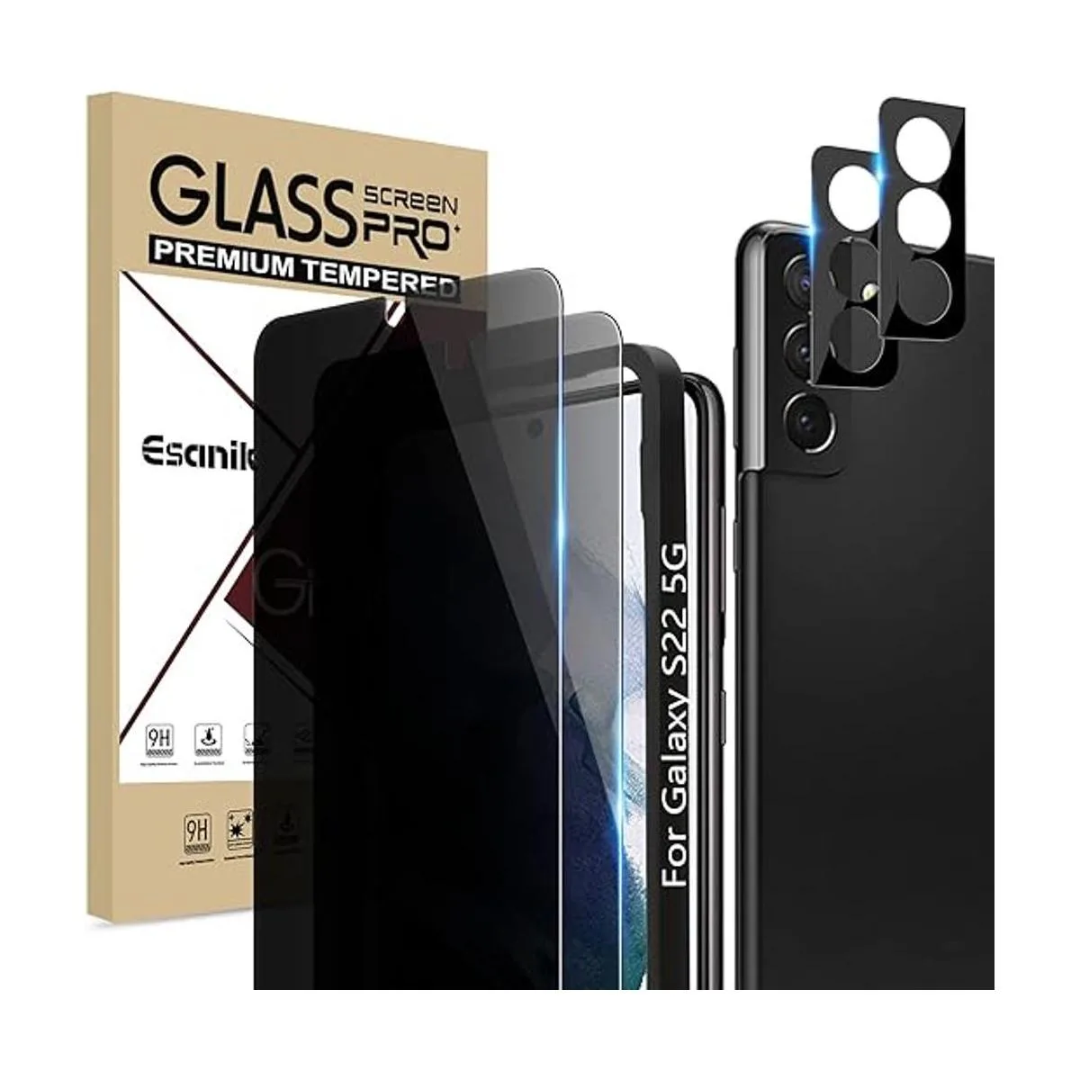 Esanik Paquete de 22 Protector de pantalla de privacidad para Samsung Galaxy S22 5G de 6.1 pulgadas NO para S22 PlusUltra Película antiespía PET con marco de fácil instalación protector de lente de cámara compatible con identificación de huellas dactilares