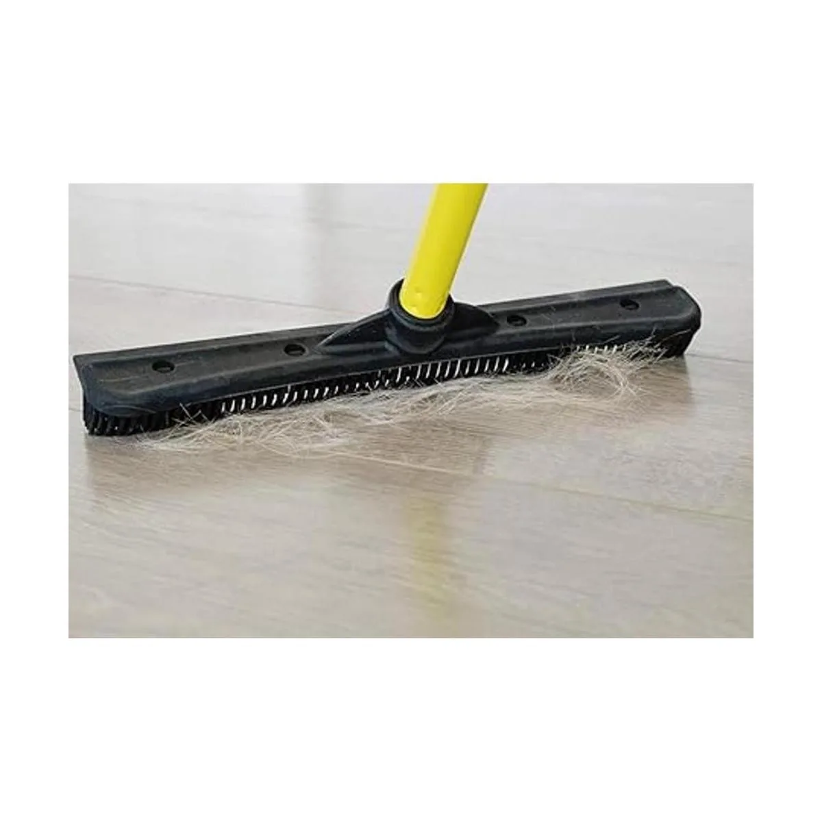 Escoba para remover el pelo de mascotas con rasqueta y mango telescópico que se extiende de 3 a 5 pies, negro y amarillo