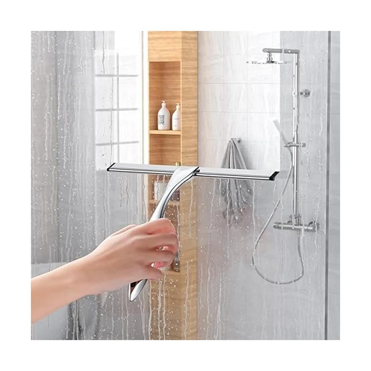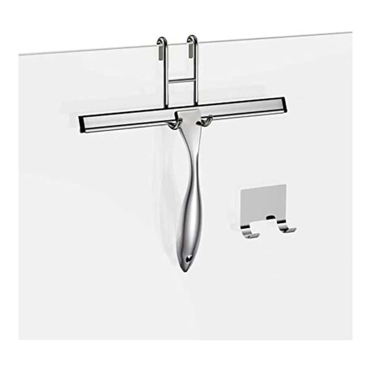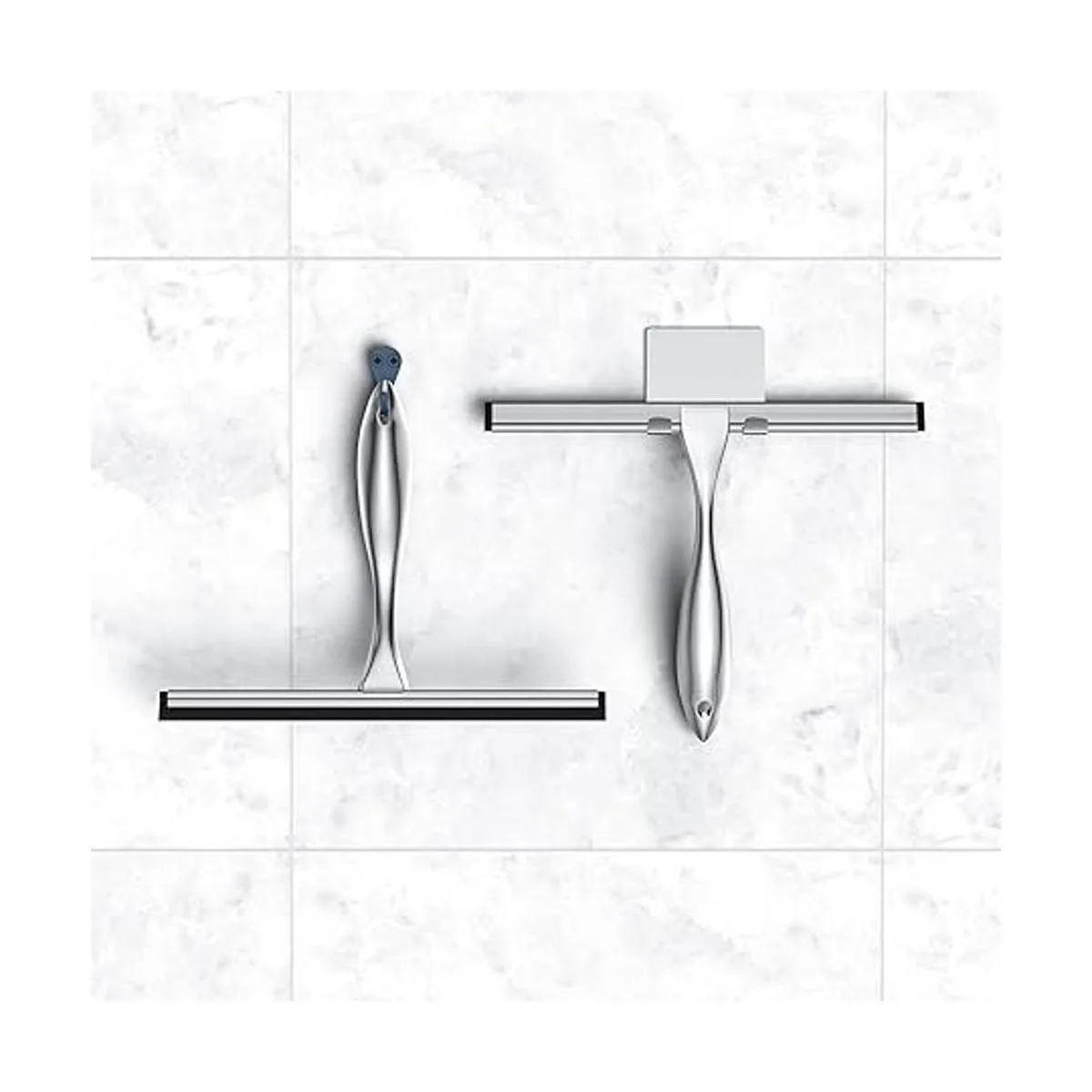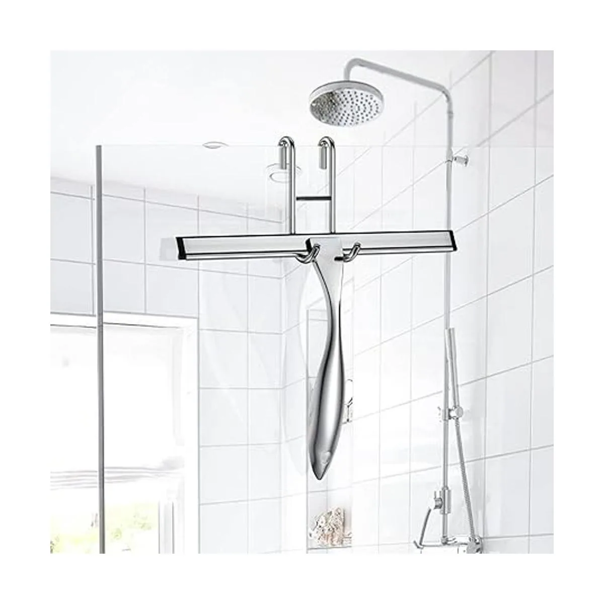 Escobilla de ducha y escobilla de ventana, acero inoxidable, 100 libre de rayas, limpiador para puertas de cristal, espejos para el hogar, limpiaparabrisas de ventanas de automóvil, soporte adhesivo, gancho para puerta de ducha, 10 pulgadas, plateado