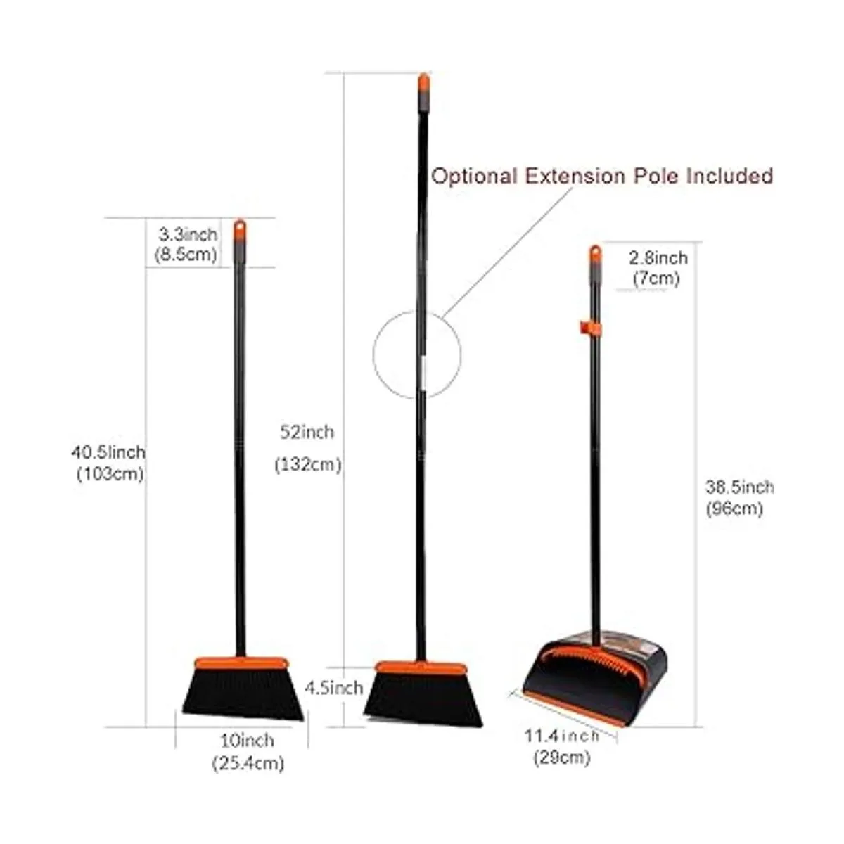 Patent No:D919916, Upgrade Broom and Dustpan Measures Over 52overall tall by 10 width,Lobby Broom steel handle is 52 long, Lobby Dust Pan steel handle is 38.5 long offer stand up Cleaning.