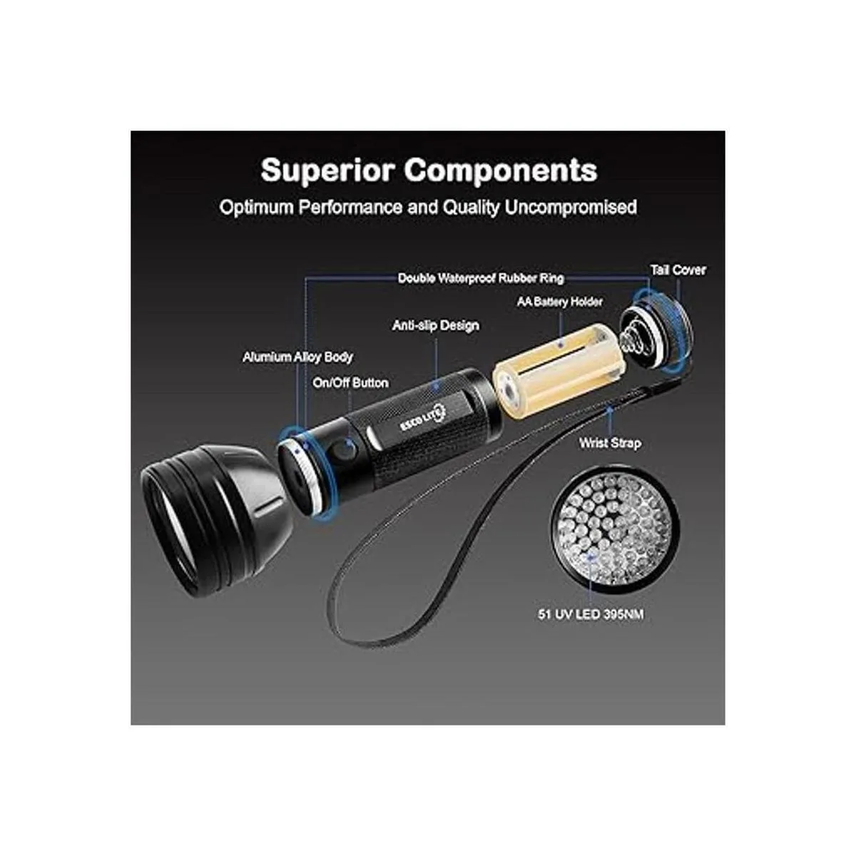 Consejos: los 51 LED de luz UV tienen una vida útil de 15 años, para prolongar la vida útil de la linterna, retira todas las baterías si no tienes la intención de usarla durante mucho tiempo.