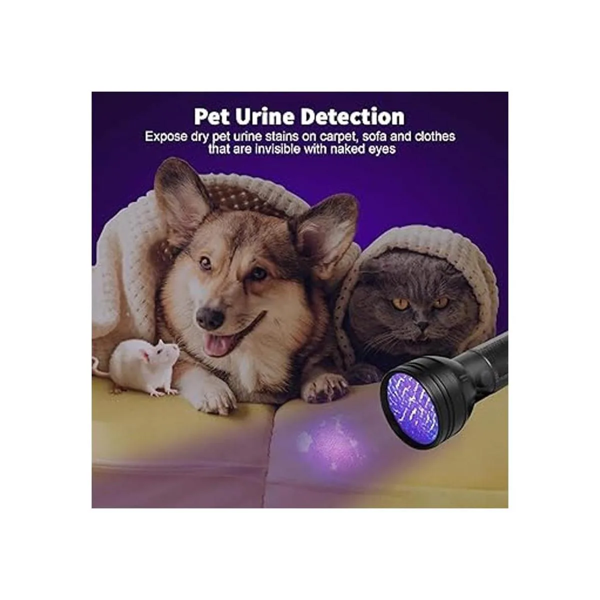 Escolite Linterna UV de luz negra, 51 LED de 395 nM, linterna ultravioleta de luz negra para detección de orina de mascotas, manchas secas, chinches, escorpión, detector de luz de orina de perrogato a juego con eliminador de olores de mascotas