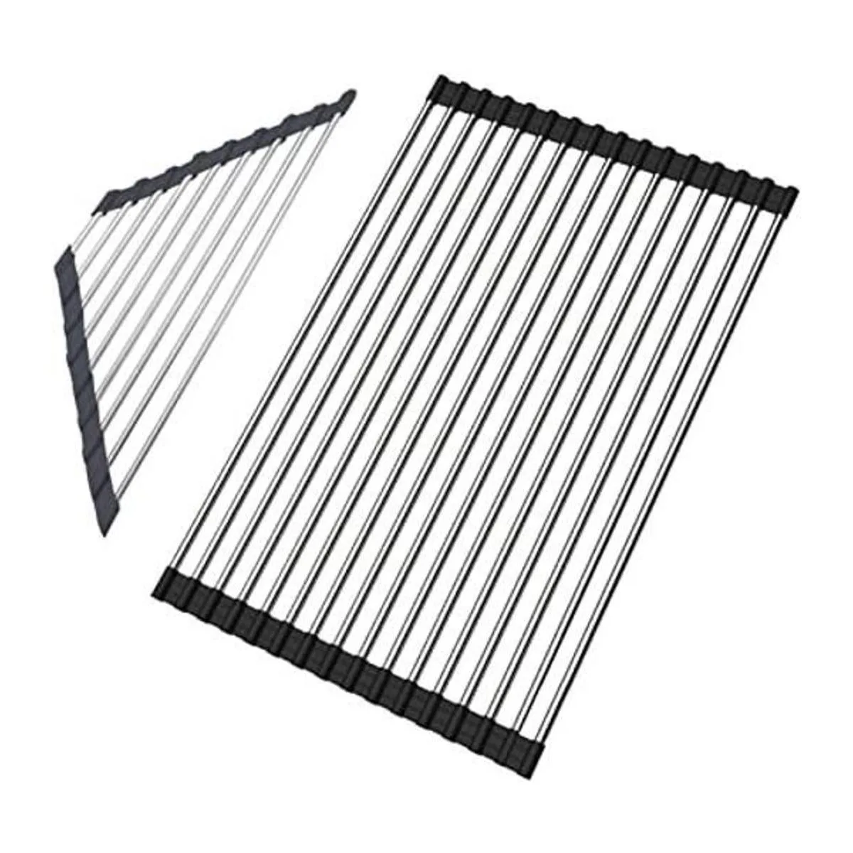 Ahorro de espacio: el escurridor de cocina enrollable es fácil de usar, este escurridor de platos se puede enrollar y entrar en un cajón rápidamente cuando no esté en uso. Mantiene la zona del fregadero de la cocina con un aspecto limpio ahorrando espacio en tu encimera. Escurridor multiusos de diseño triangular para esquina del fregadero. El diseño triangular ayuda a hacer el mejor uso del espacio de esquina del fregadero, adecuado para la mayoría de fregaderos de cocina.