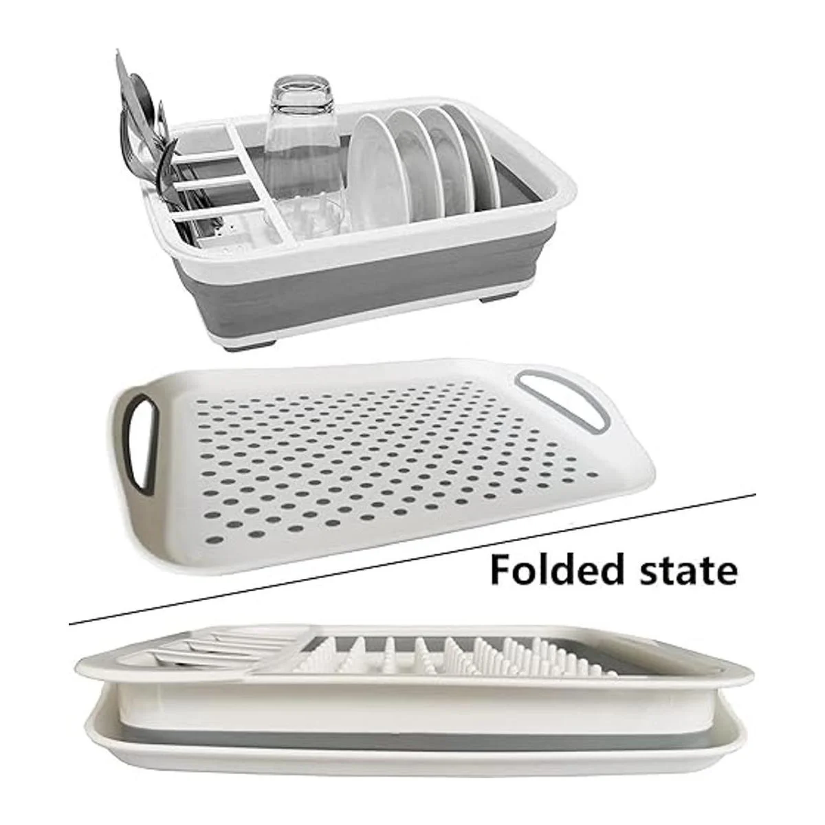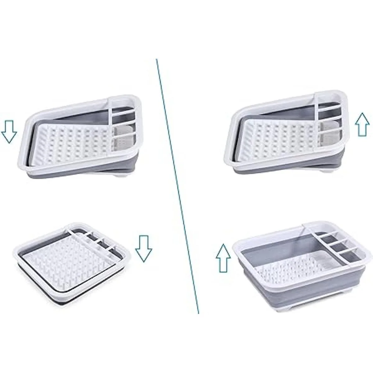 escurridor de platos plegable con tabla de drenaje, escurridor de platos portátil, plegable, organizador de cubiertos