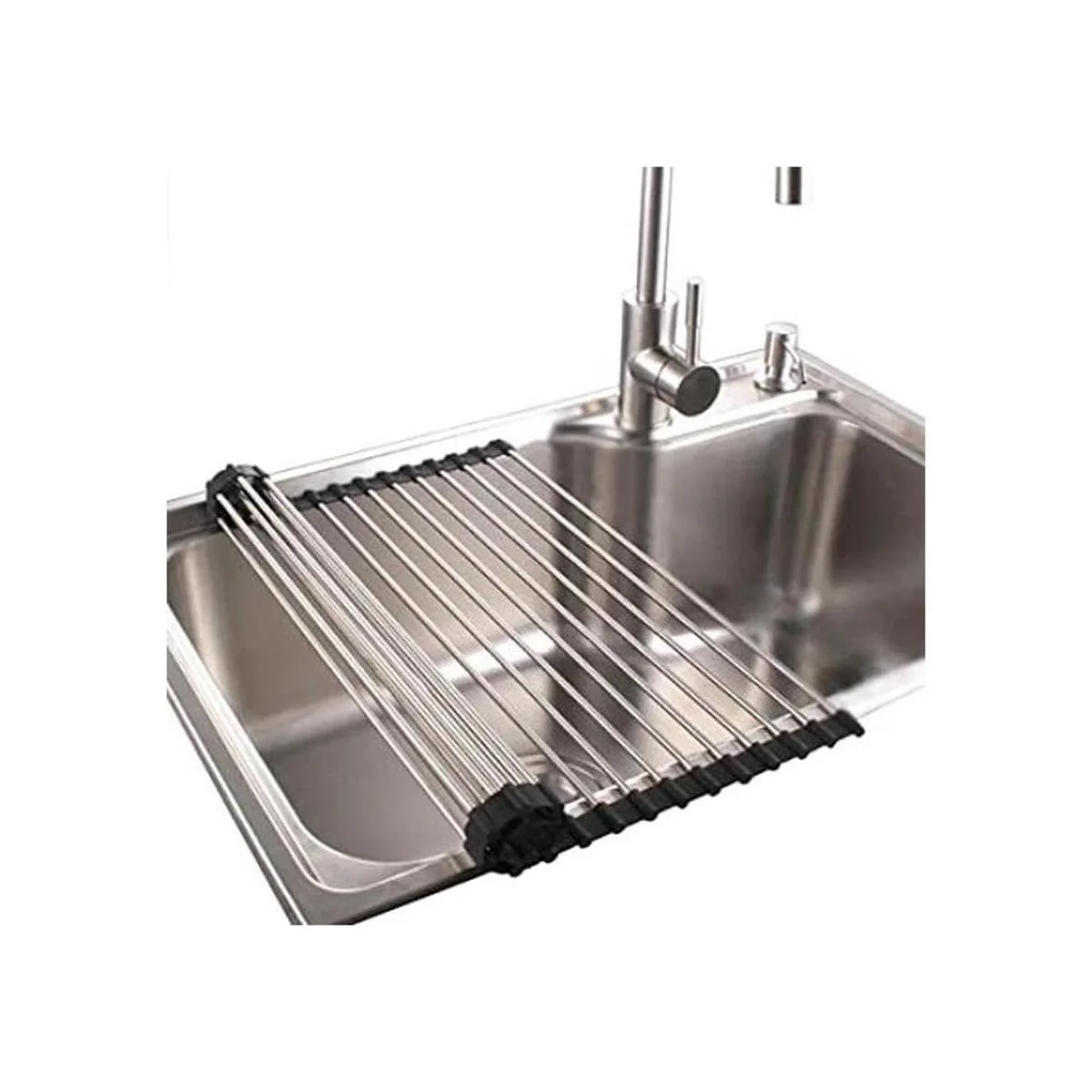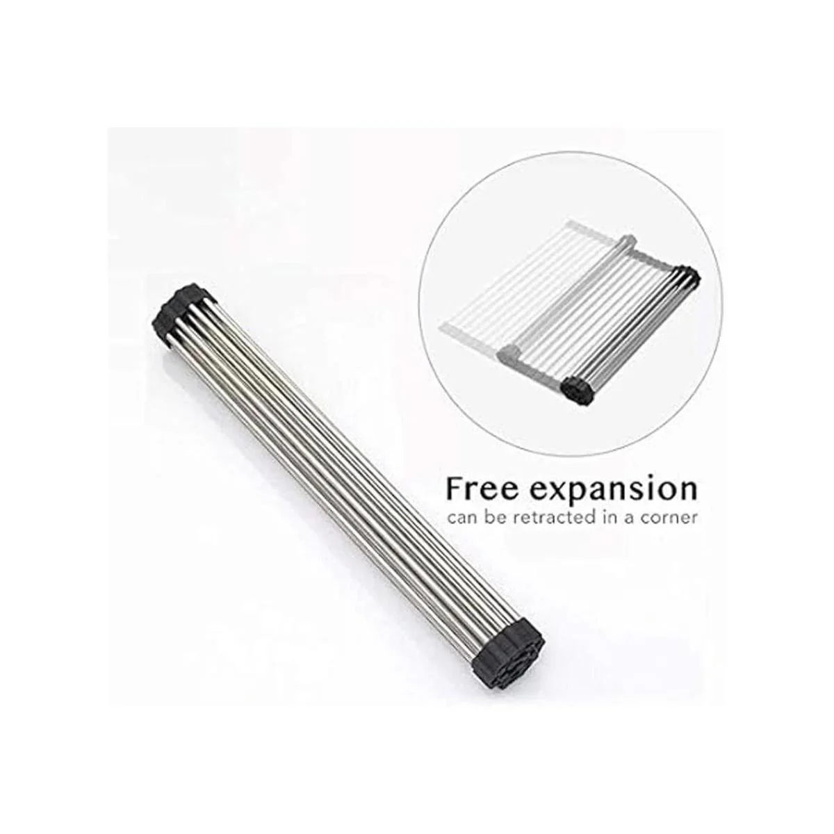 Escurridor enrollable de platos para caravana, plegable sobre el fregadero, acero inoxidable 304, escurridor de platos de cocina, resistente al calor, multiusos, portátil 17 x 11.8 pulgadas
