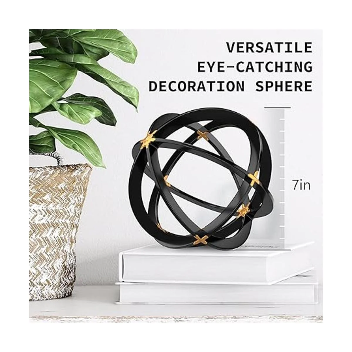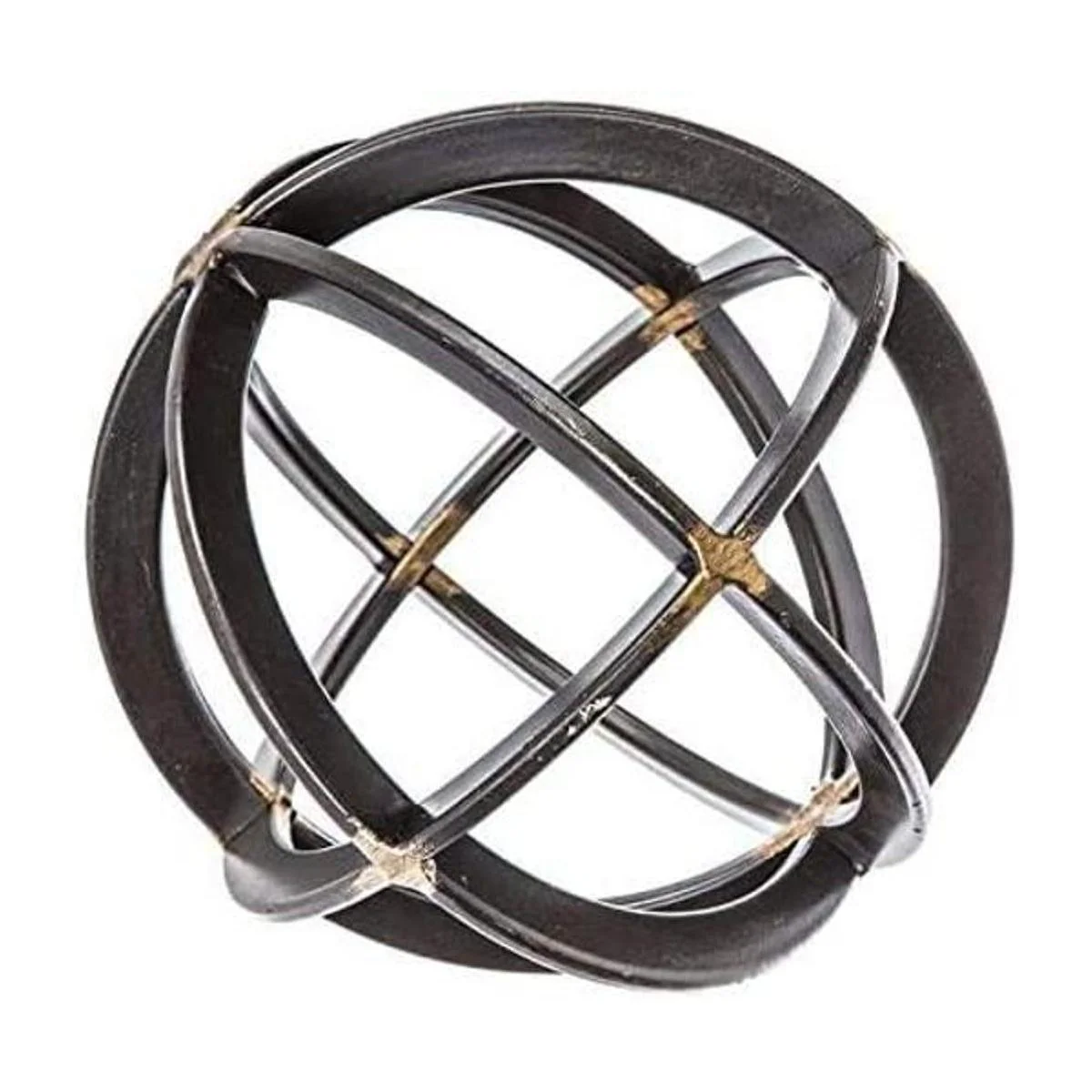 Esfera de hierro negra y dorada, 7 pulgadas, escultura de metal con bandas decorativas, detalles modernos de decoración del hogar, decoraciones de mesa para sala de estar, cocina, dormitorio, centro de mesa para mesa auxiliar, mesas auxiliares