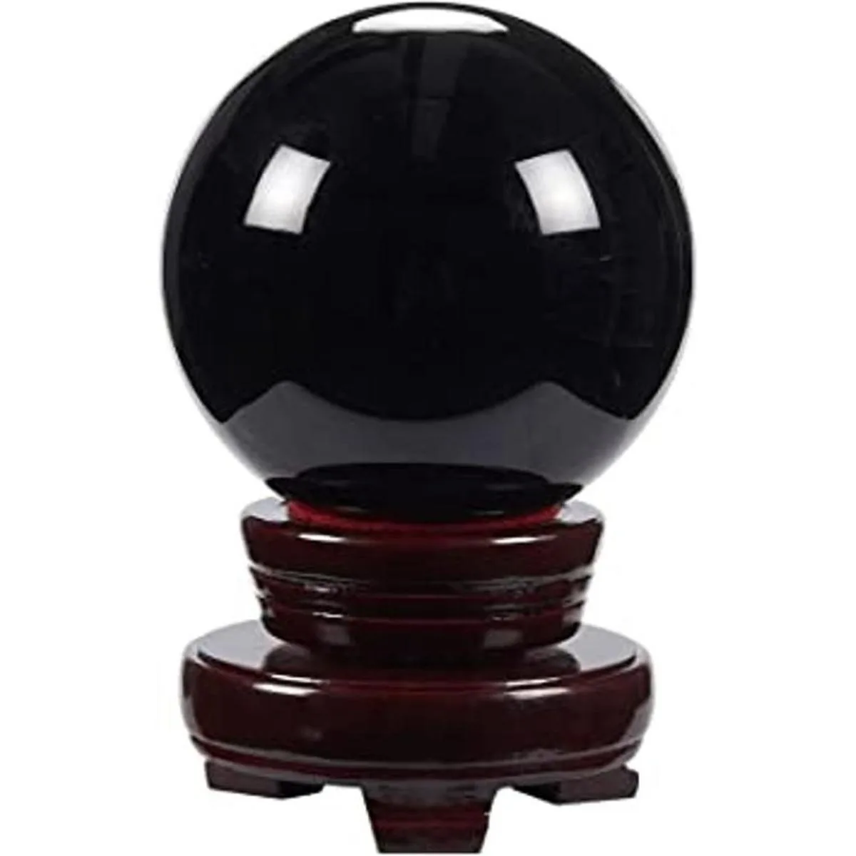 Esfera pequeña de bola de cristal de obsidiana negra con soporte de madera decorativo para meditación, curación, Feng Shui 3.150 in 3.15 pulgadas