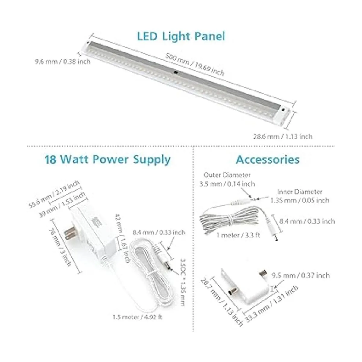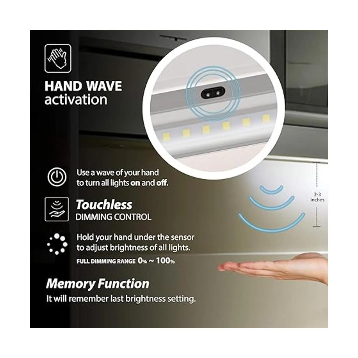 EShine Acabado blanco, 3 paneles extralargos de 20 pulgadas, LED regulables para debajo del gabinete, kit de iluminación para debajo del gabinete, activado por ondas a mano, control de atenuación sin contacto, blanco frío