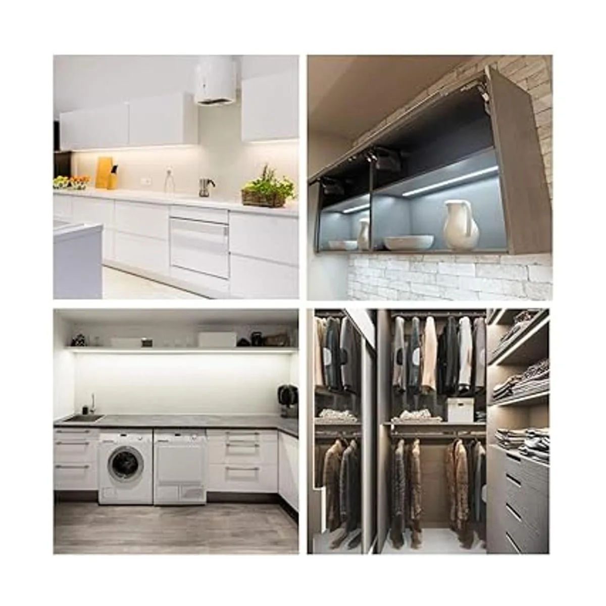 Instalación sencilla: ya sea que prefieras tornillos o calcomanías de 9.8 ft, estas luces se pueden instalar y brillar solo minutos después de abrir la caja. El adhesivo en las calcomanías es lo suficientemente fuerte como para sostener las barras de luz, y los clips de alambre hacen que sea una instalación sin problemas. Solo asegúrate de colocar el sensor a aproximadamente una pulgada del borde del armario para garantizar un buen escaneo cada vez.