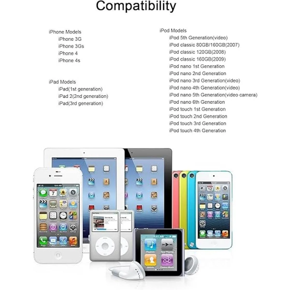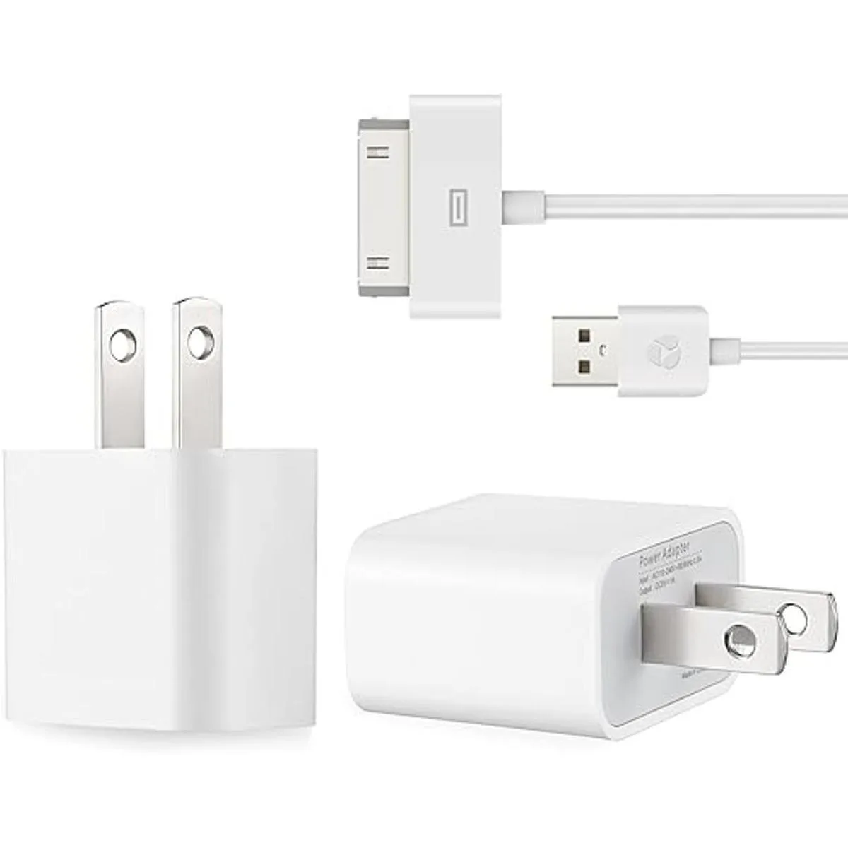ESK TM Cable de carga USB de 6 pies y 30 pines con adaptador de corriente USB de 5 W para iPhone 44s, iPhone 3G3GS, iPad 123, iPod touch 1234 paquete de 2