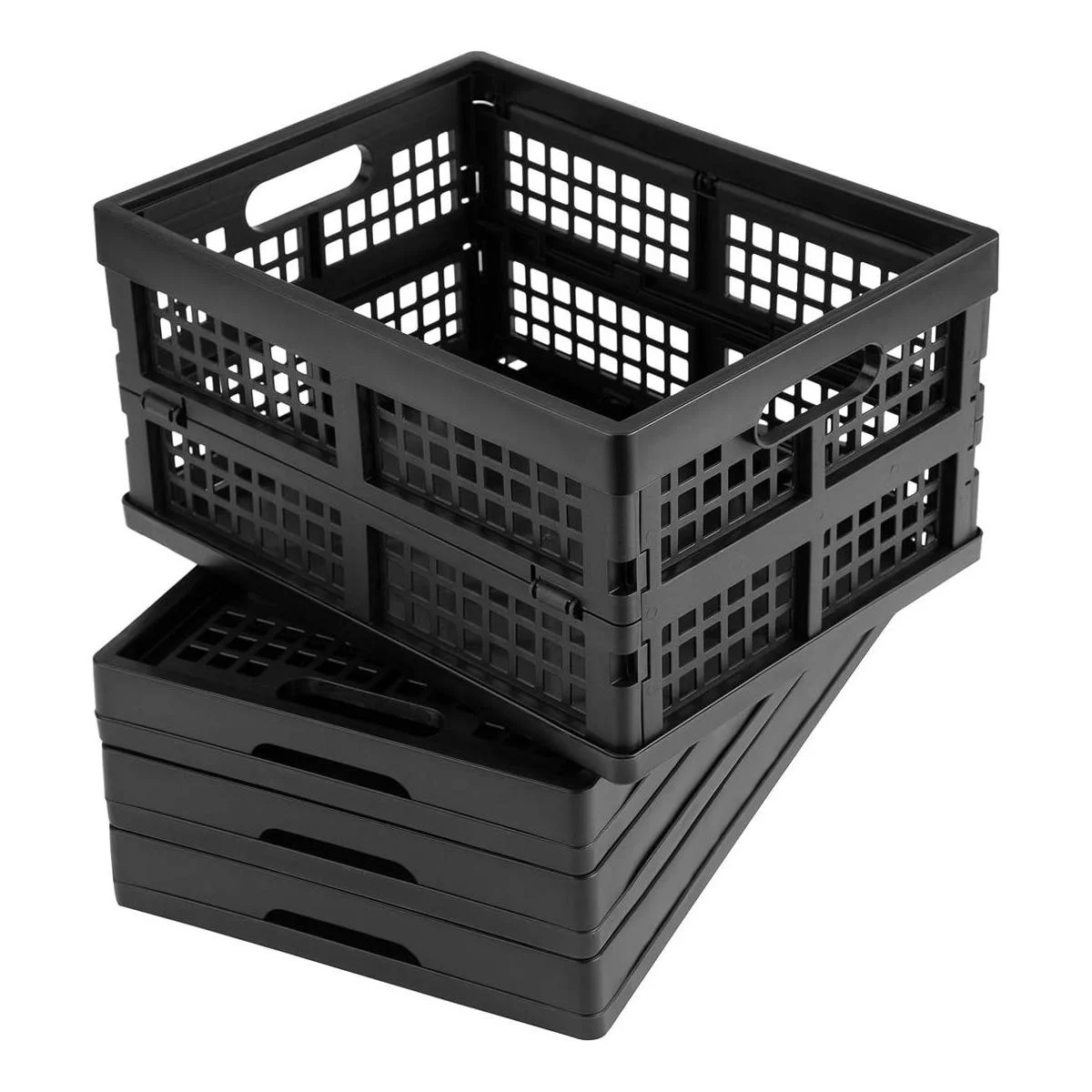 Eslite Cajas de almacenamiento plegables de plástico de 16 L, cajas de almacenamiento plegables, paquete de 4, color negro