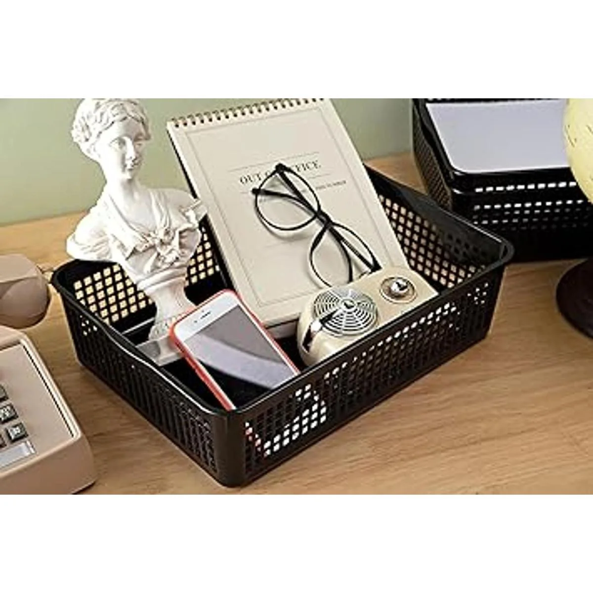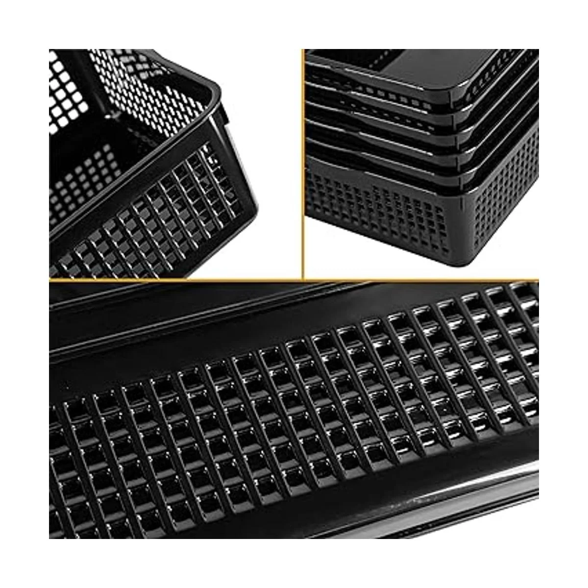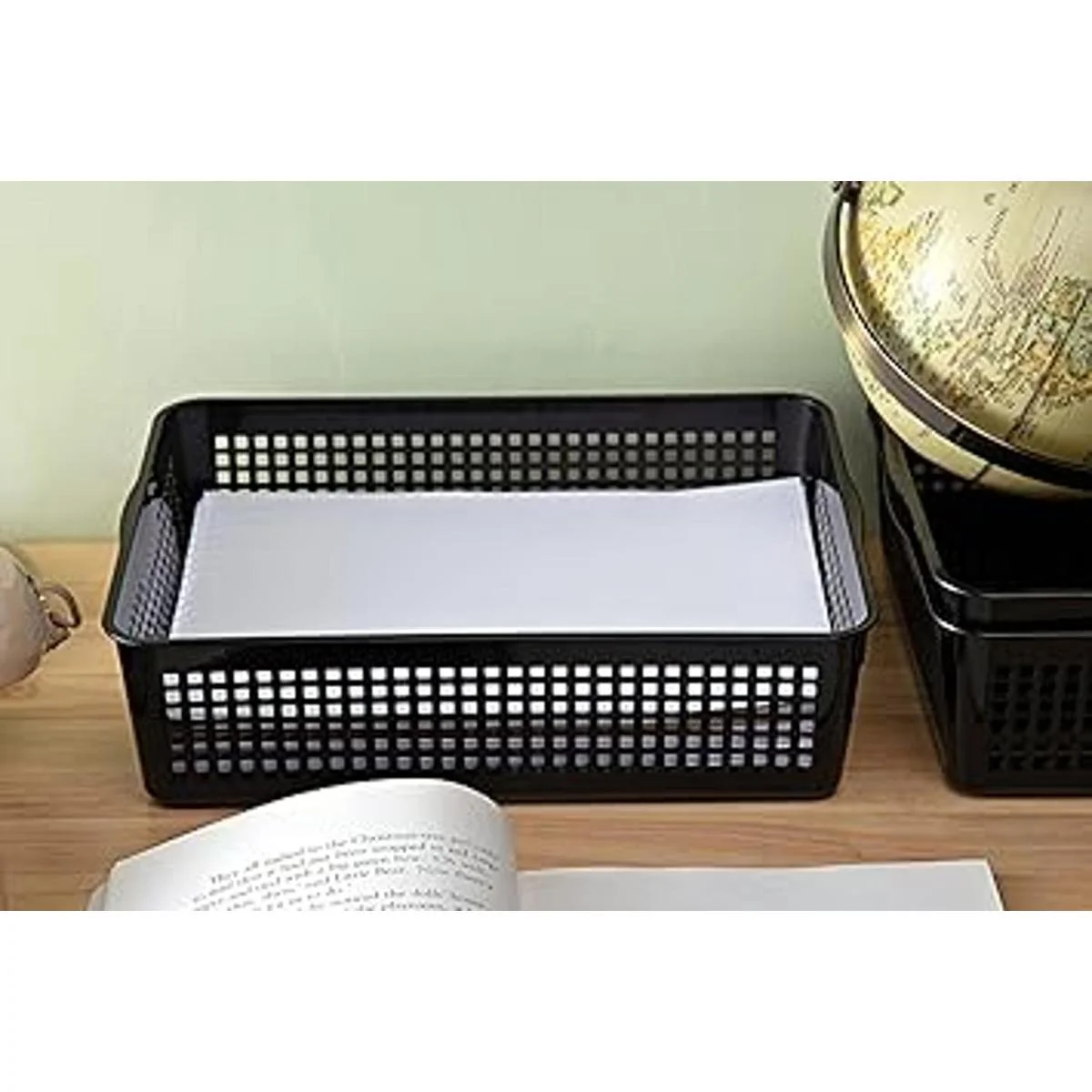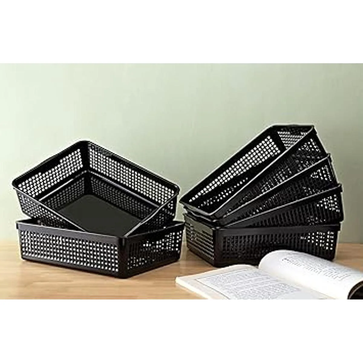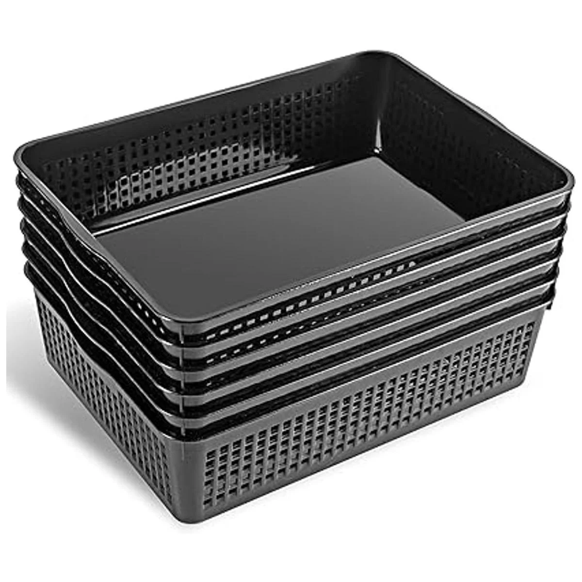 Eslite Cesta de almacenamiento de plástico tamaño A4, bandeja organizadora de cartas, papel de archivo, 6 paquetes negro