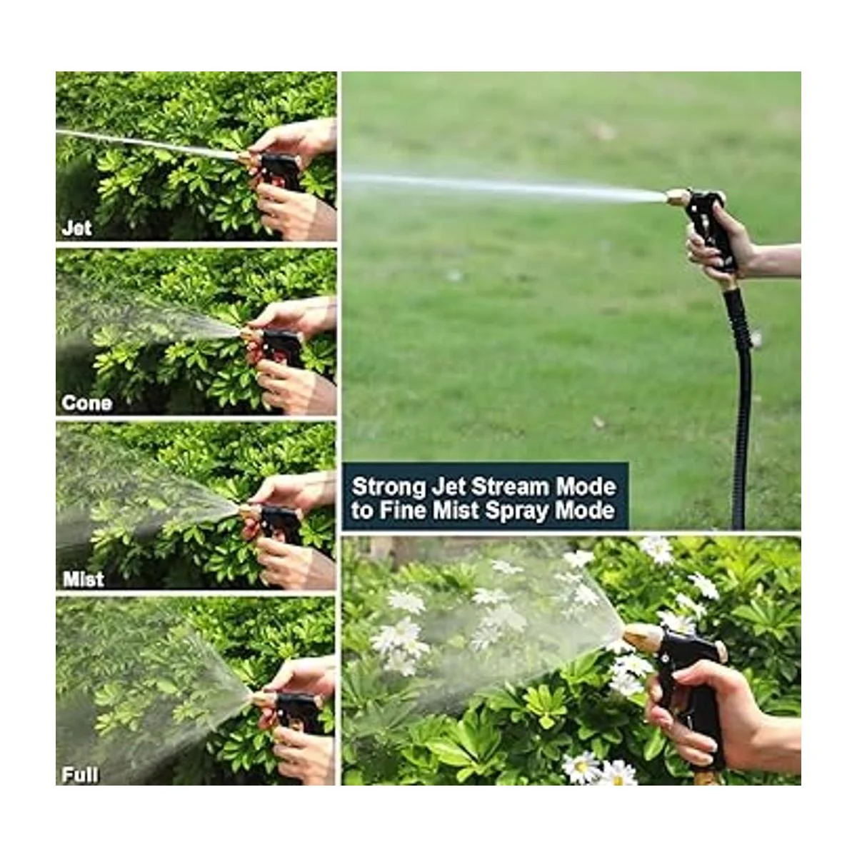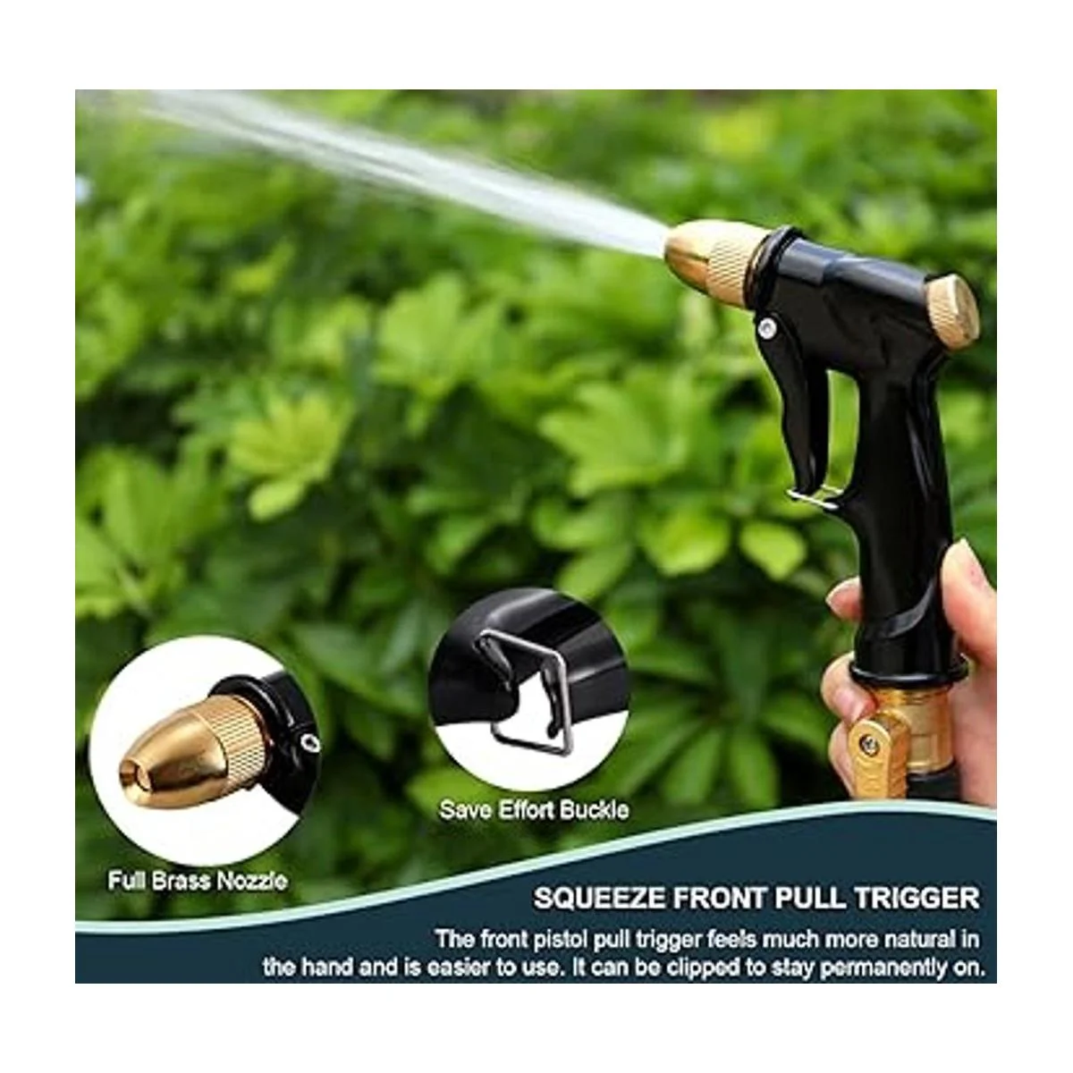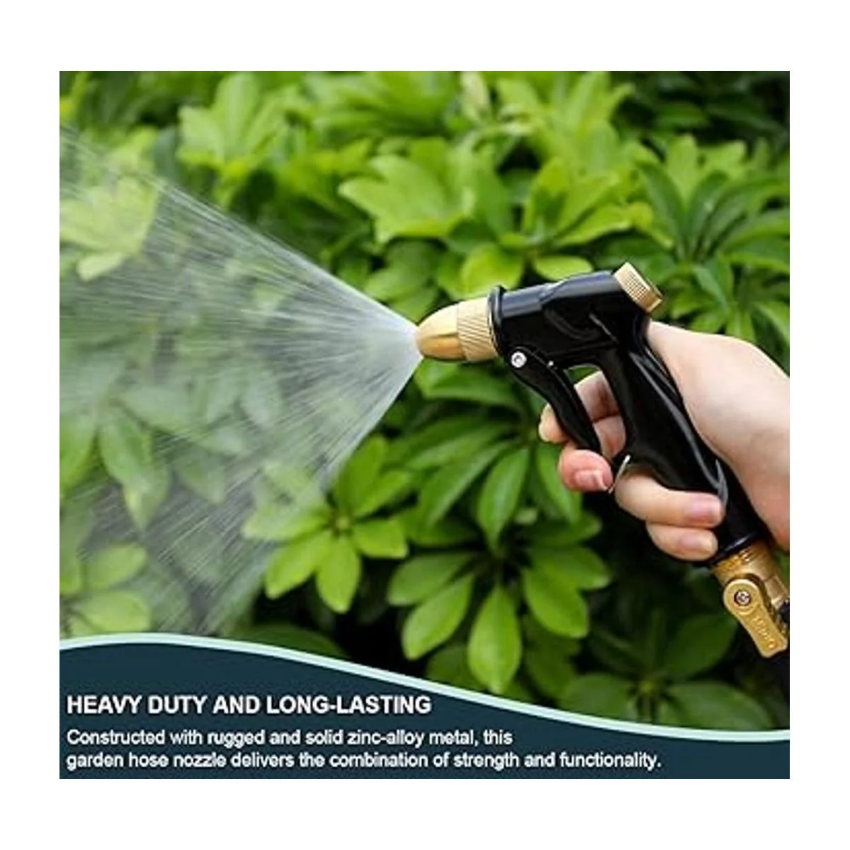 Estructura totalmente metálica: Hecho de 100 estructura de metal y cabeza de latón, duradero y potente. Boquilla de latón y cuerpo de de aleación de zinc. La es mucho más fuerte que las de plástico y está construida para durar. El diseño clásico del mando trasero tipo y el conjunto de tirantes añaden estética y longevidad. Se adapta a todas las mangueras de jardín estándar de 3/4, perfectas para regar su jardín, césped y parterres. También es ideal para lavar tu automóvil, perros y mascotas.