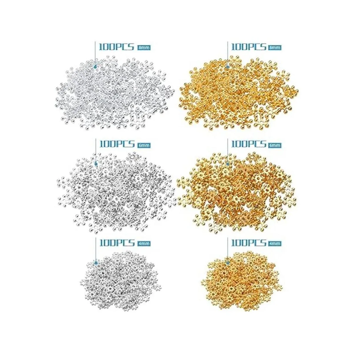 Espaciadores de cuentas de joyería, 600 cuentas de aleación de 1.496 pulgadas1.575 pulgadas0.315 in, cuentas de metal para pulseras, collares, joyería, plata y oro